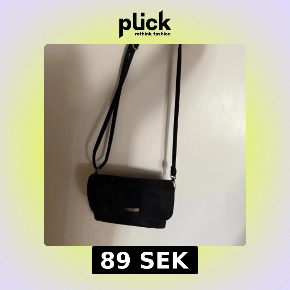 Säljer en stilren svart axelväska från Puccini med flera dragkedjefack och justerbar rem. Väskan är i ett mjukt syntetmaterial och har en metallbricka med logga framtill. Perfekt för dig som vill ha ordning på dina grejer och gillar minimalistisk design.