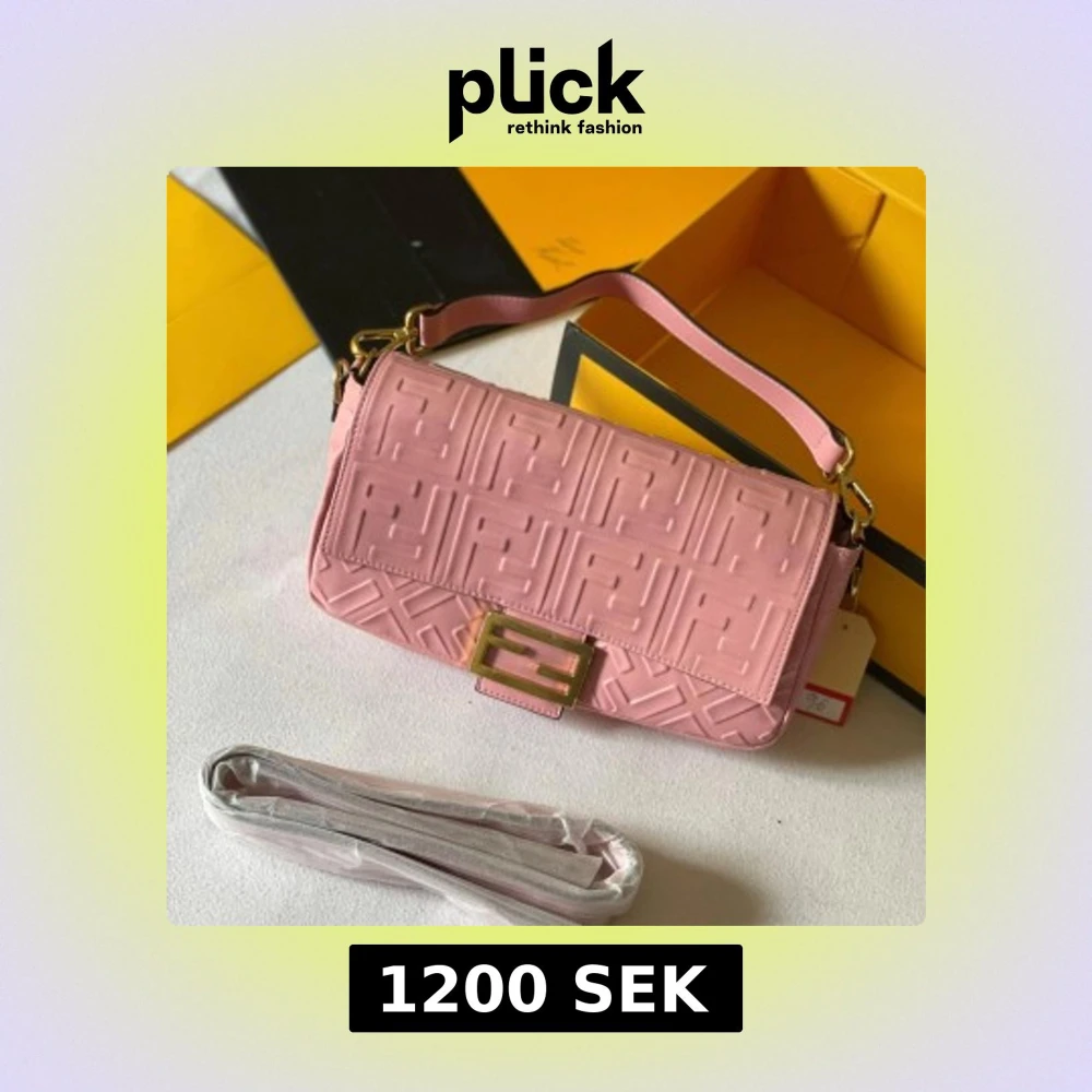 Snygg rosa axelväska från Fendi med ett elegant mönster och gulddetaljer. Väskan har en stilren design med en praktisk axelrem och ett ikoniskt Fendi-spänne framtill. Priset går att diskuteras