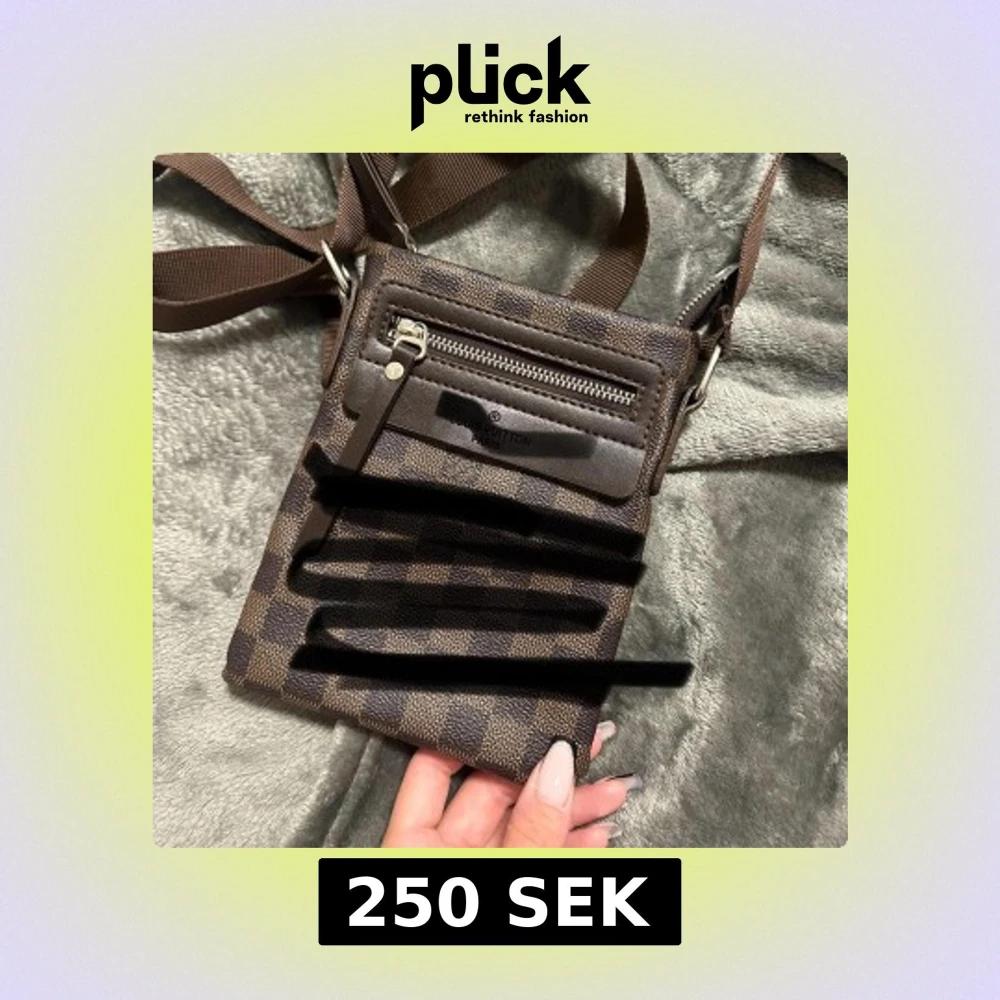 Snygg brun axelväska med klassiskt rutmönster och dragkedja framtill. Perfekt för att bära med sig det viktigaste på ett stilfullt sätt.
