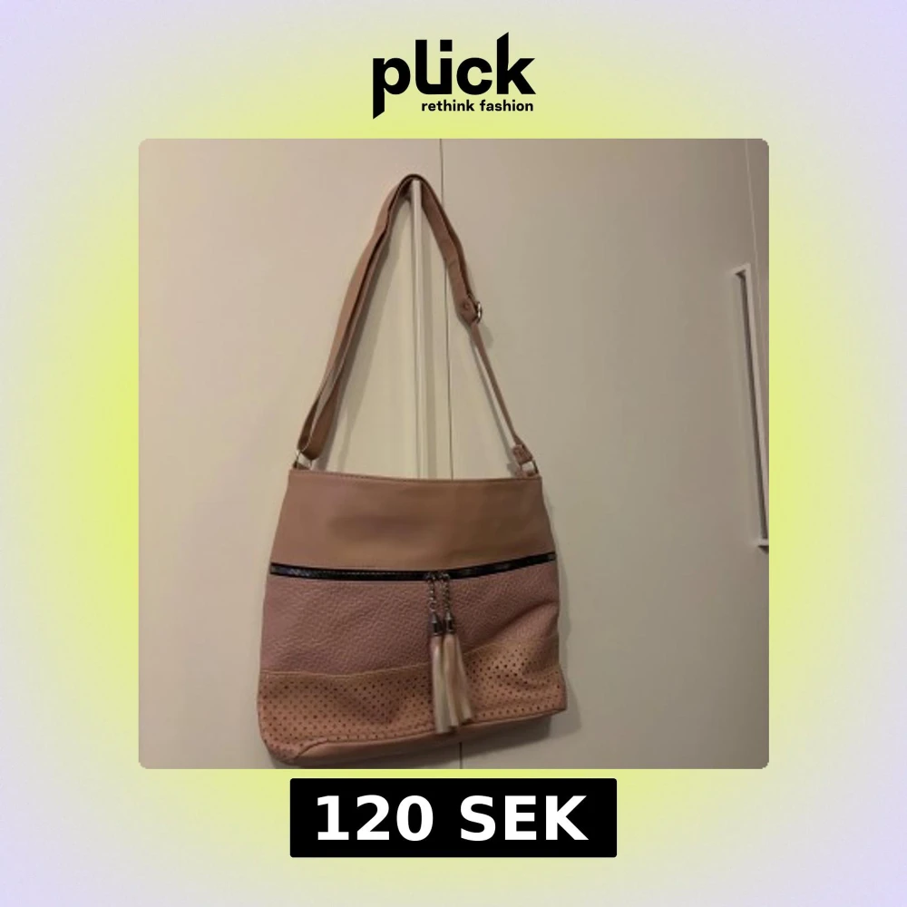 Snygg rosa axelväska med justerbar rem och coola tofsar vid dragkedjan. Väskan har en mix av slät och perforerad yta i syntetmaterial, vilket ger en modern vibe. Perfekt storlek för att få plats med allt du behöver och passar till många olika stilar.