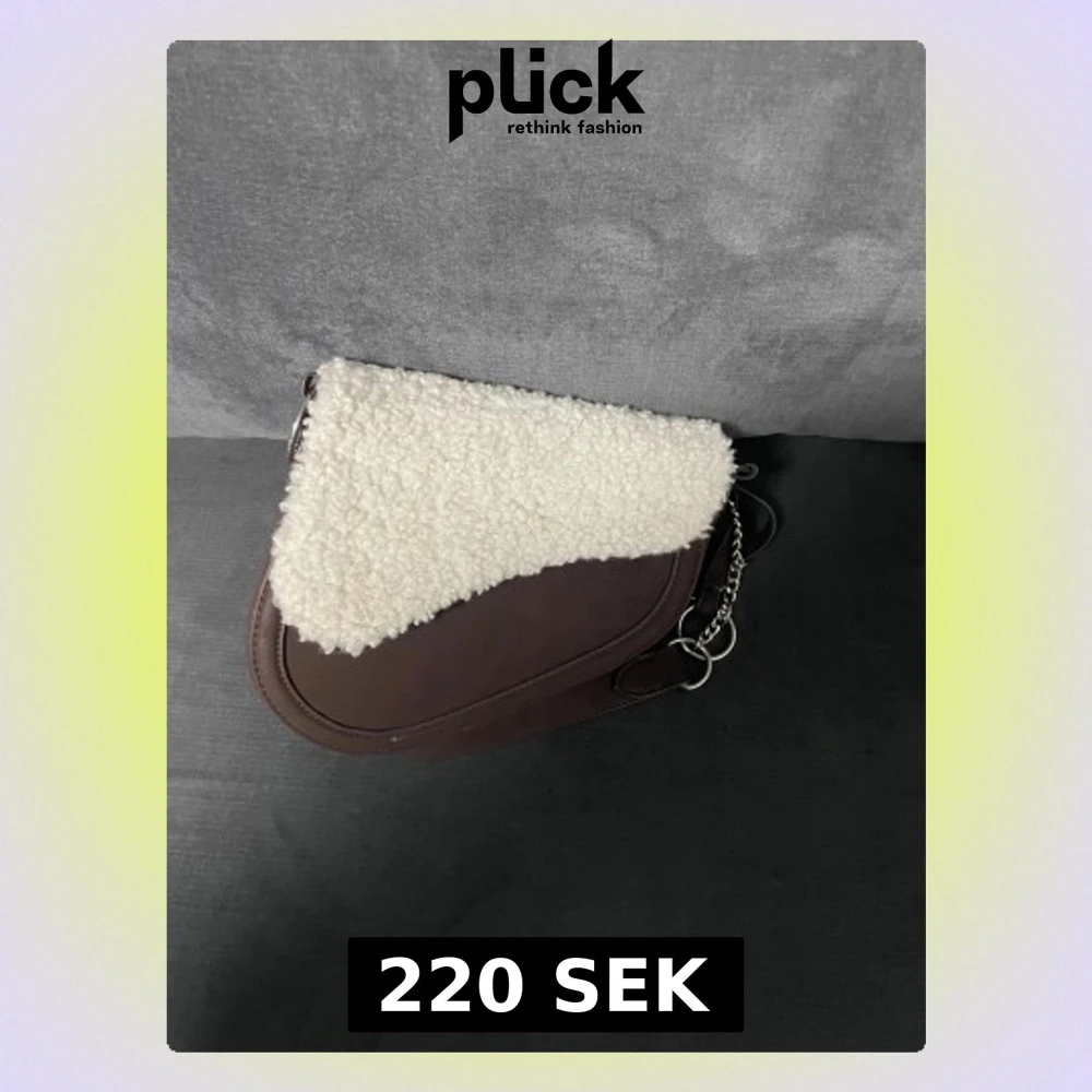 Säljer en snygg brun axelväska med mjuk vit pälsdetalj på locket. Väskan har en cool form, bred axelrem och silverfärgade ringar och kedjor som ger extra edge. Perfekt för dig som vill sticka ut med en unik accessoar. Materialet är skinn och pälsimitation.