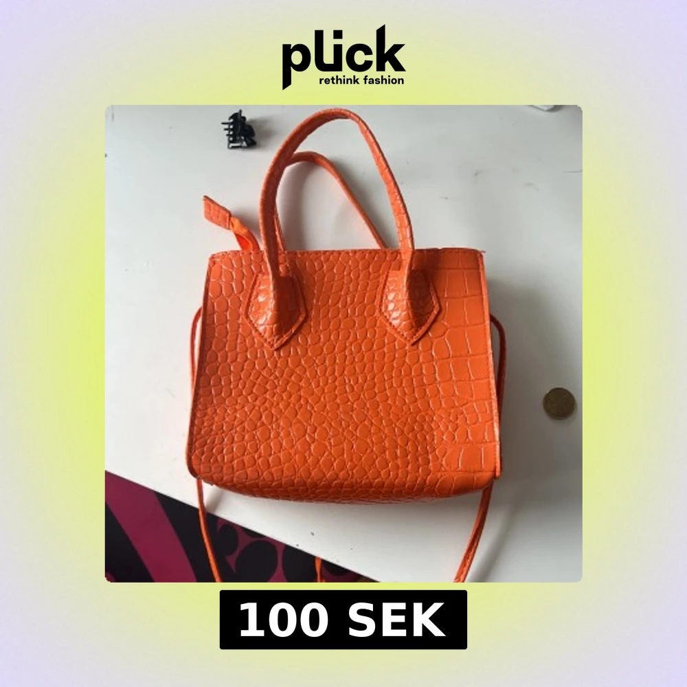 Snygg orange axelväska med krokodilpräglat mönster. Väskan har både handtag och lång axelrem samt dragkedja upptill. Perfekt för att addera färg till din outfit.