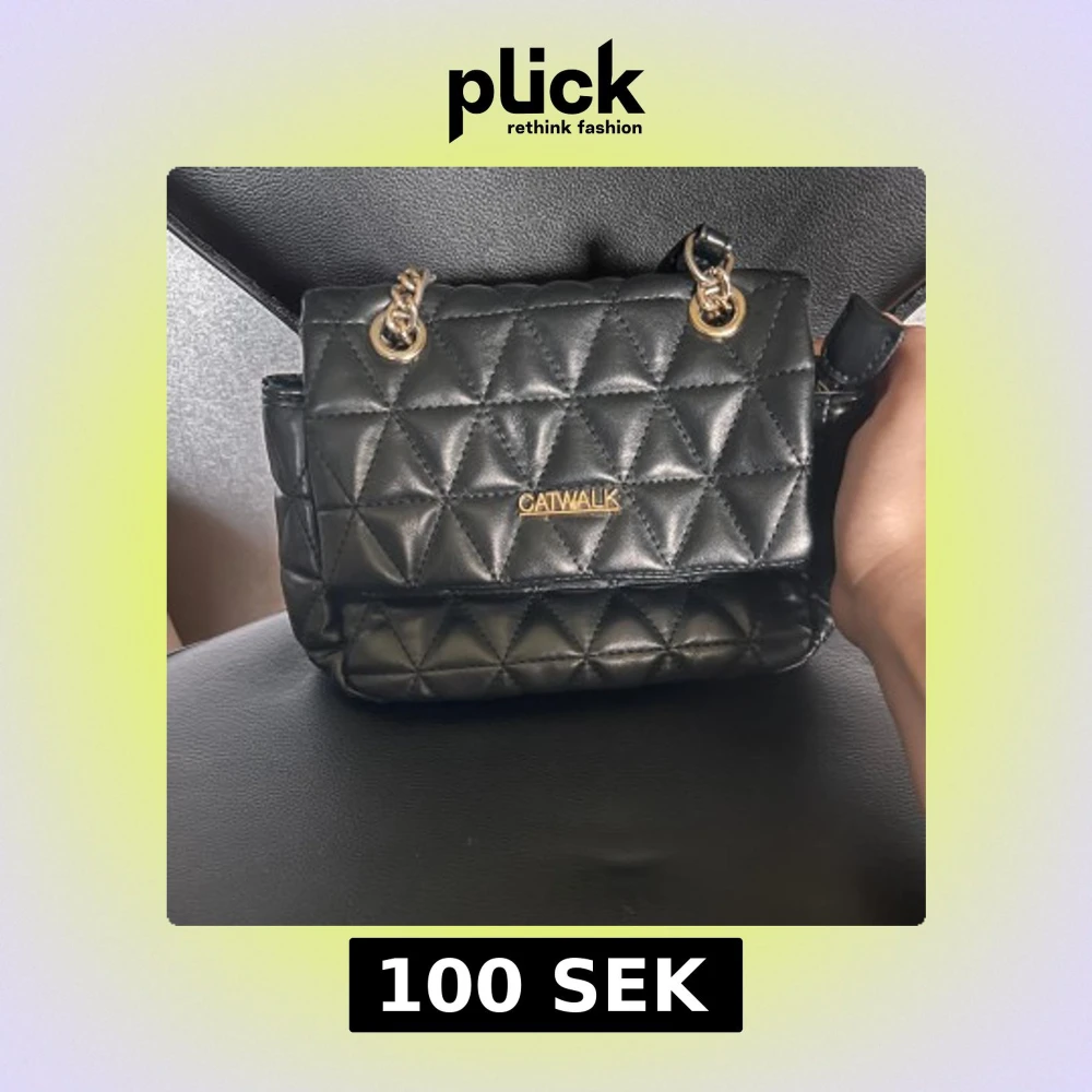 Säljer en svart axelväska från Catwalk med guldfärgade kedjedetaljer. Väskan har ett elegant rutmönster och en praktisk storlek för vardagens viktigaste saker. Perfekt för dig som vill ha en stilren accessoar med lyxig känsla.