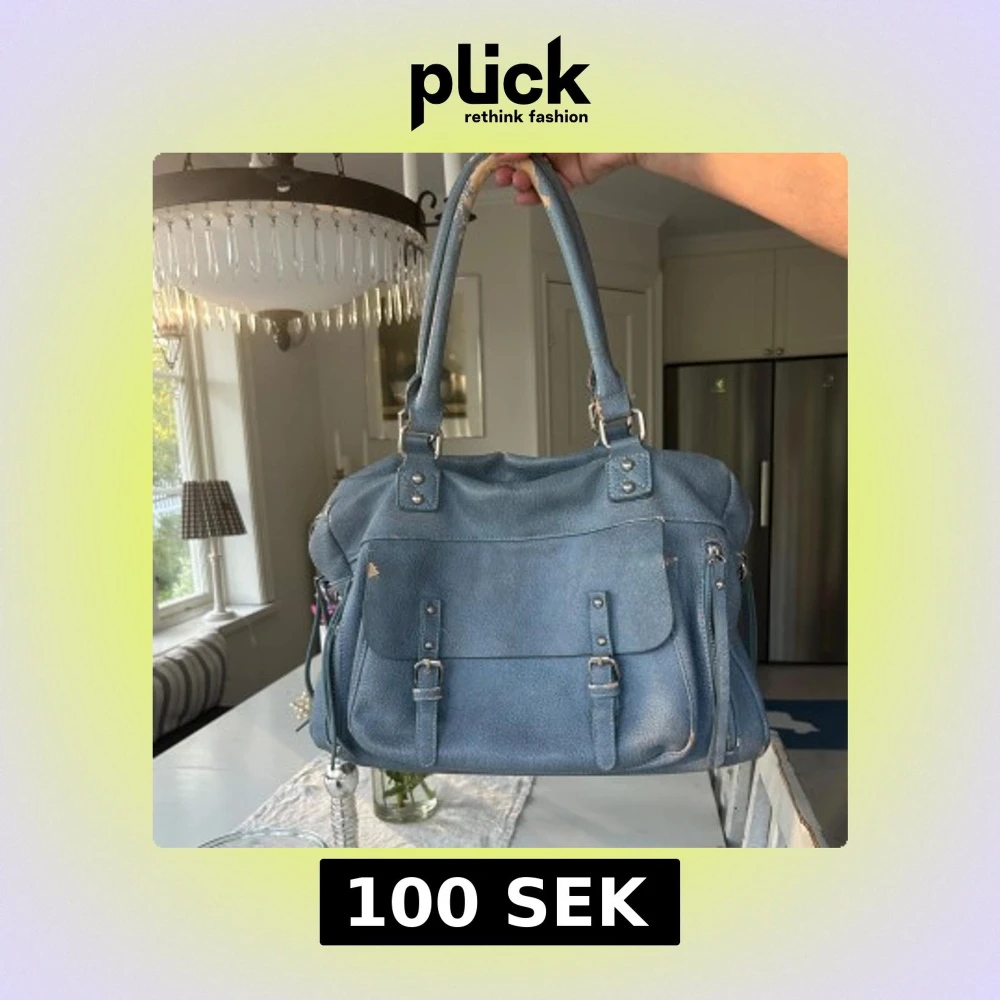 Snygg blå axelväska i syntetmaterial med silverfärgade metalldetaljer. Väskan har dubbla handtag, framficka med spännen och dragkedja samt ytterfack med dragkedja på baksidan. Perfekt storlek för vardagens alla prylar. En del slitningar men tycker ändå den är fin och praktisk!🥰pris kan diskuterasvid snabb affär!