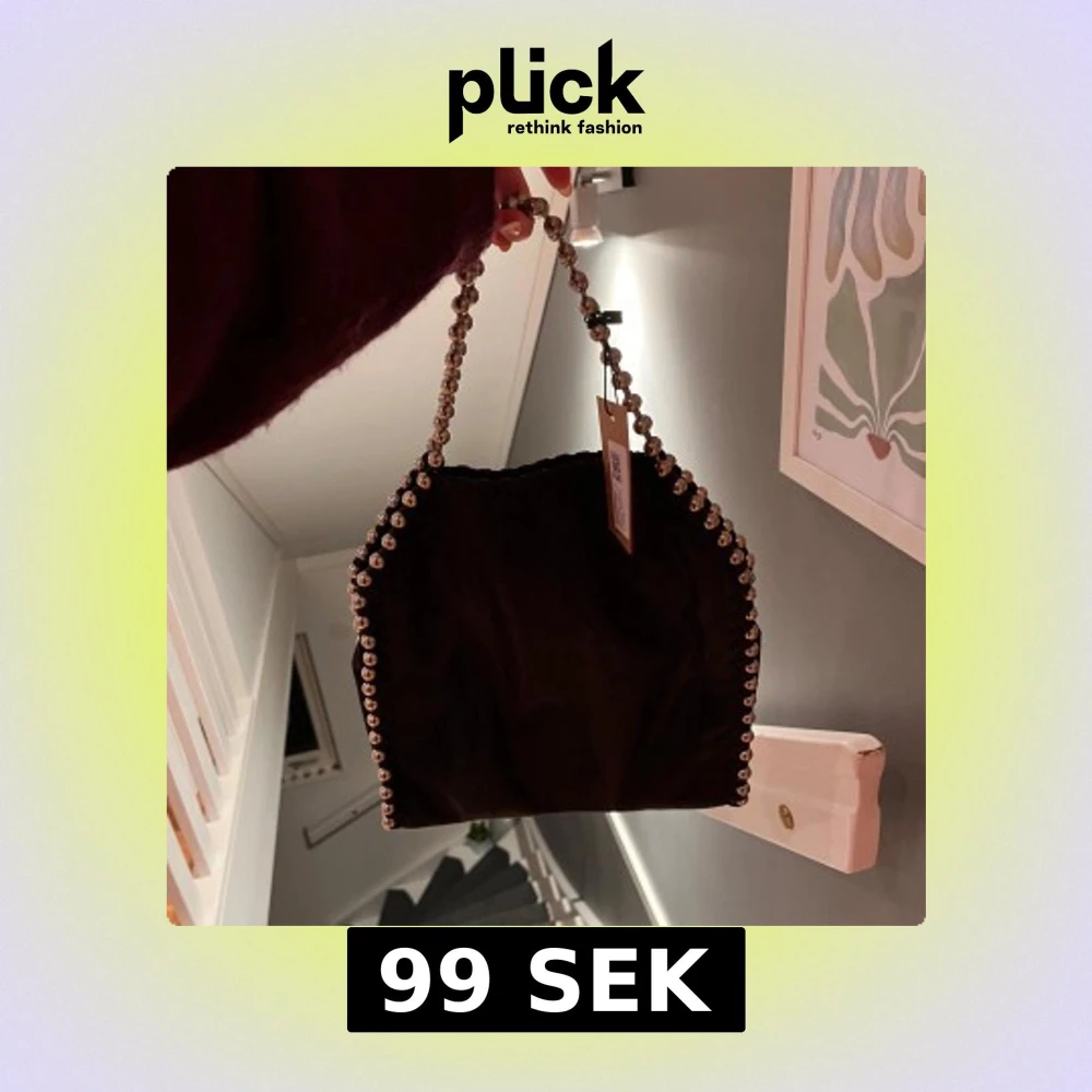 Säljer en svart axelväska i NY SKICK med coola pärldetaljer längs kanterna och handtaget.