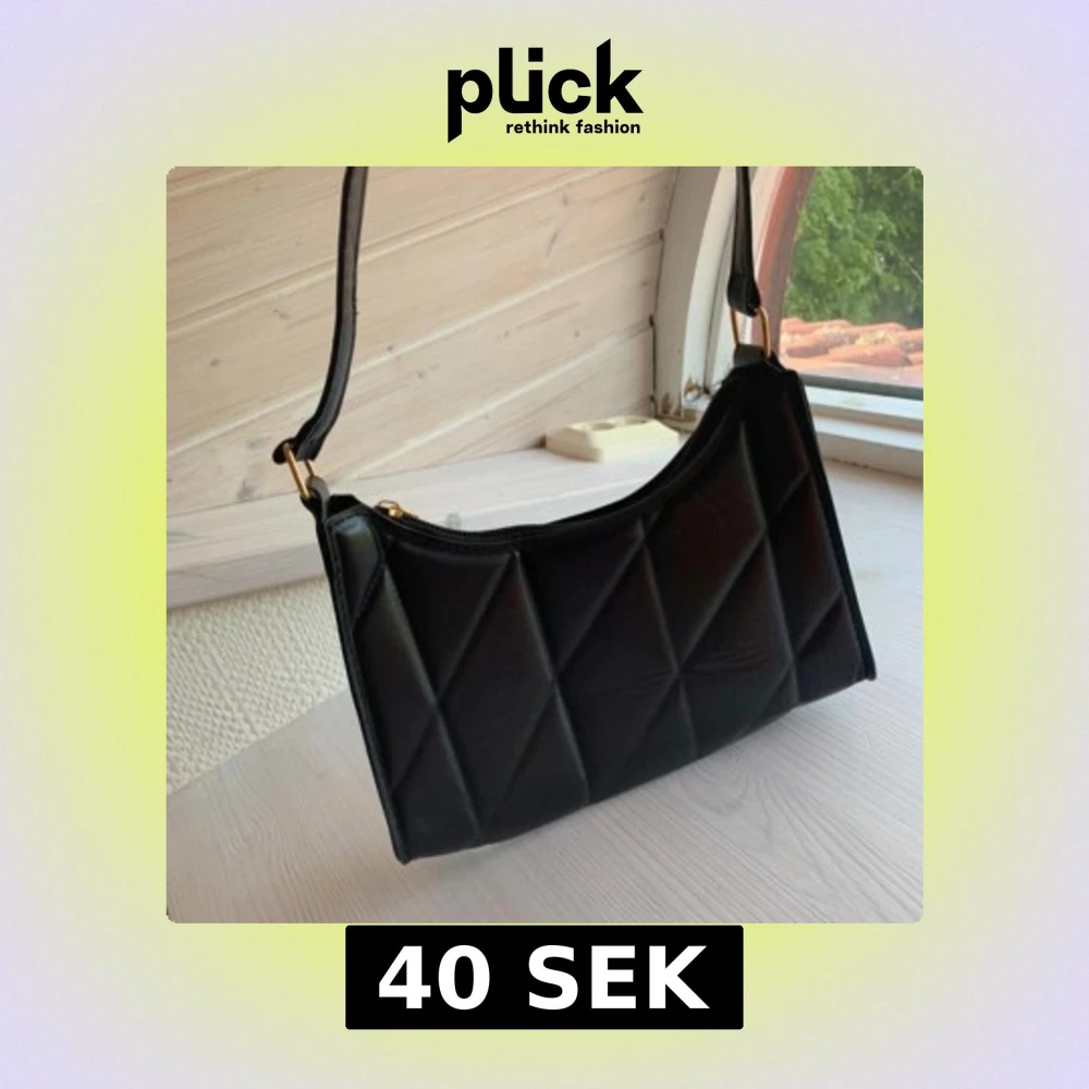 Snygg svart axelväska med quiltad design och guldfärgade detaljer. Väskan har en stilren form och dragkedja upptill. Perfekt för att lyfta din outfit med en trendig touch.