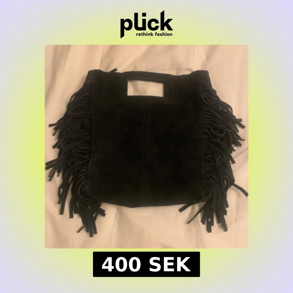 Svart skinnväska med fransar