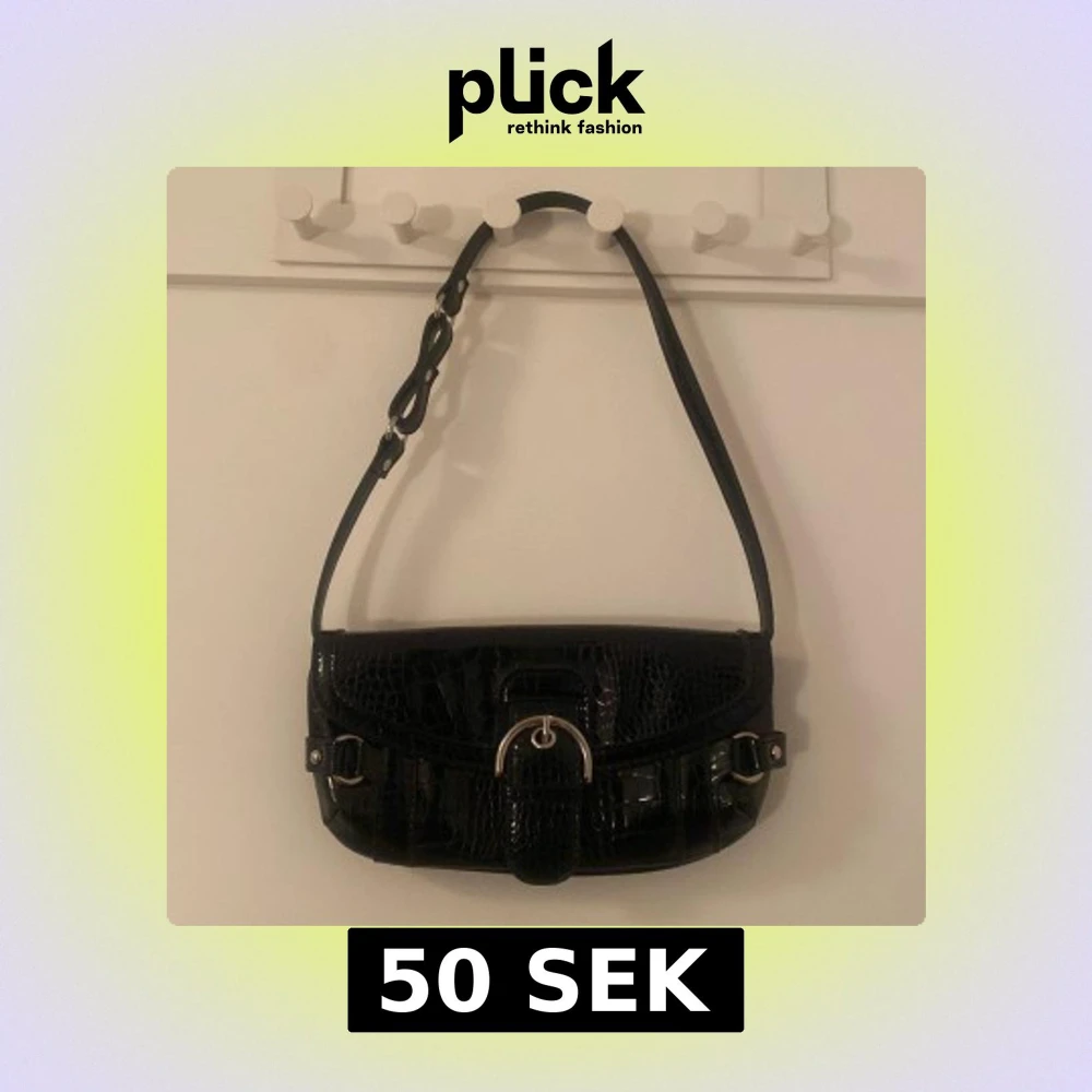 Snygg svart axelväska med krokopräglat mönster och silverfärgade detaljer. Axelrem med ett dekorativt spänne framtill. Perfekt storlek för det viktigaste och ger en cool vibe till din outfit.