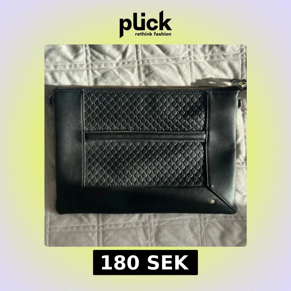 Stilren svart kuvertväska från Edblad med snyggt fjällmönstrad framsida och detaljer i slätt skinn. Väskan har guldfärgad dragkedja och insida i svart textil. Perfekt storlek för att bära det viktigaste och passar till många olika looks.