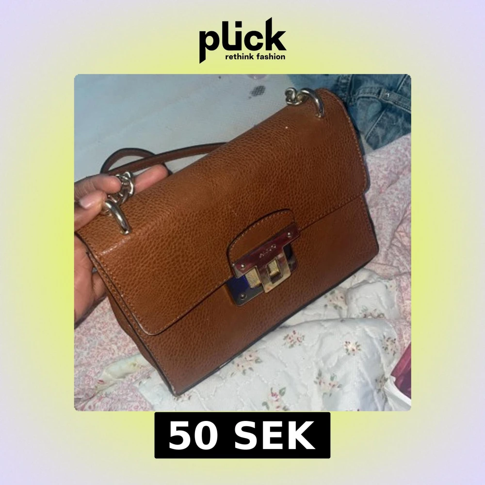 Snygg brun axelväska från ALDO i skinnimitation med grov guldkedja och metallspänne framtill. Väskan har ett fack med dragkedja på baksidan och flera innerfack. Perfekt storlek för det viktigaste och ger en stilren vibe till din outfit.