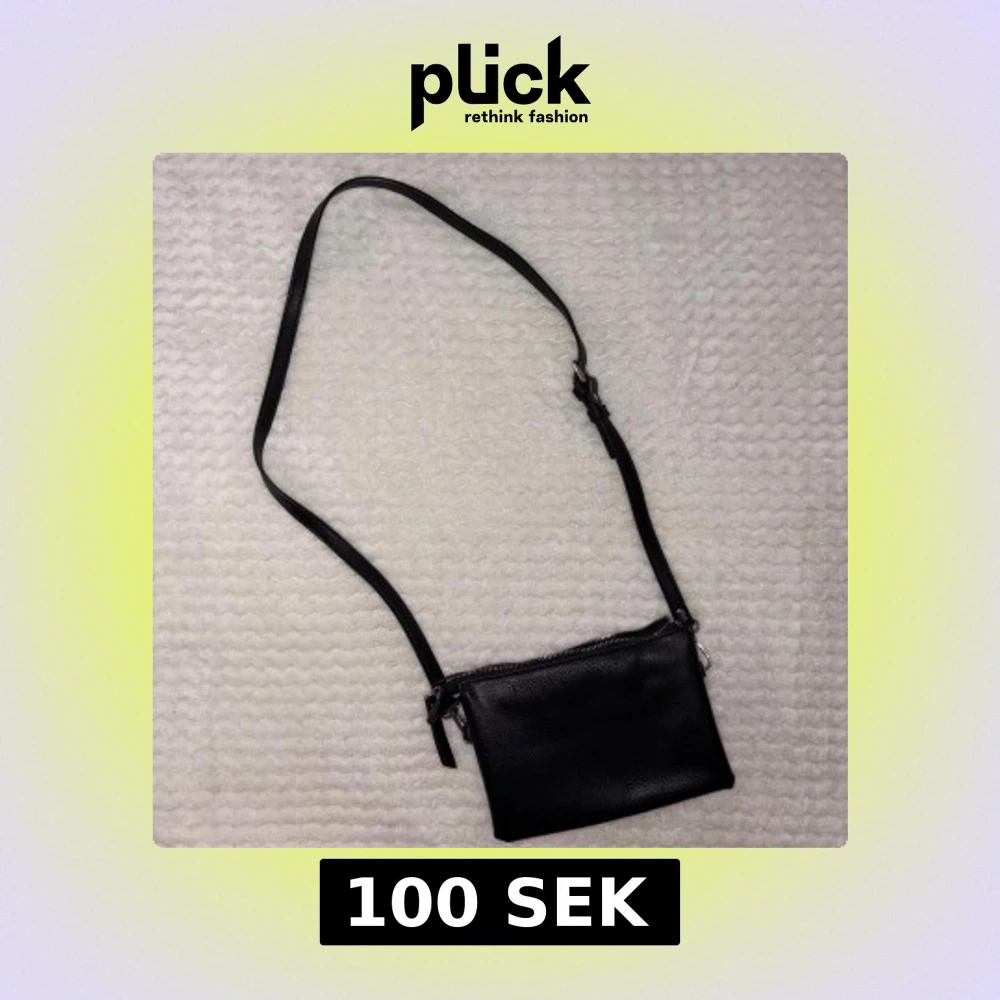 En stilren svart axelväska i äkta skinn med justerbart axelband och silverfärgade detaljer. Väskan har en enkel, rektangulär form och stängs med dragkedja upptill. Perfekt storlek för det viktigaste och passar till många olika outfits.