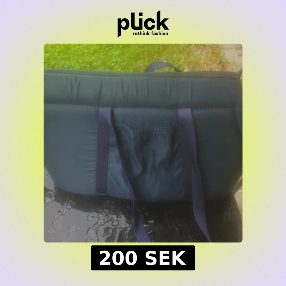 Säljer en mörkblå vadderad axelväska med dragkedja upptill och långa, breda axelband. Väskan har en praktisk ytterficka och är rymlig med mjuk insida, perfekt för att bära med sig större saker. Tillverkad i syntetmaterial. Användningsområde: djurtransport vid t.ex resor. nypris 850