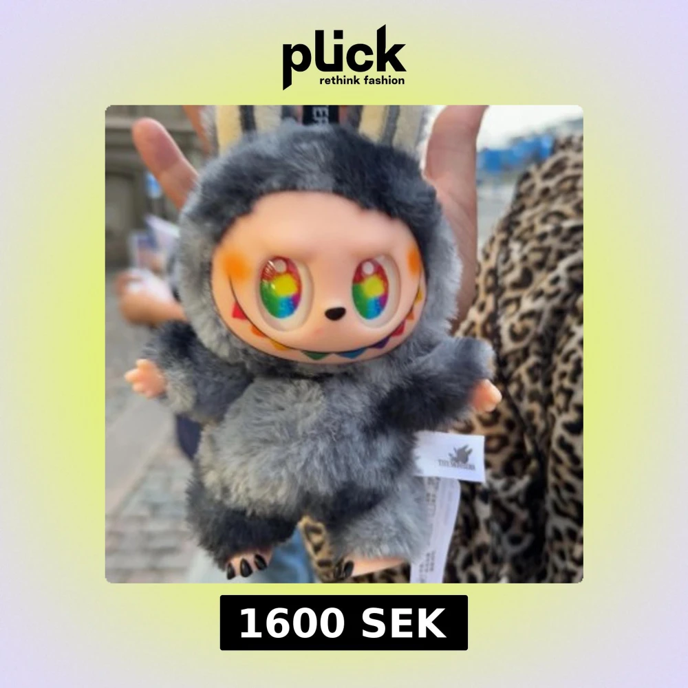 Supergullig lafufu från Pop Mart The Monsters, formad som en liten figur med fluffig päls i grått och svarta detaljer. Väskan har öron, regnbågsfärgade ögon och ett brett leende. Perfekt accessoar för dig som vill sticka ut den är väldigt svårt att få tag på jag fick beställa 6 lafufu packet för att få den så det är därför den säljs för så högt pris men pris kan diskuteras 💞💞
