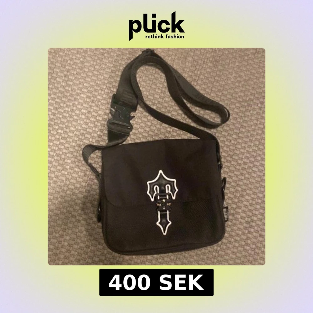 Snygg svart axelväska från trapstar med justerbar rem och coolt vitt emblem på framsidan. Väskan har dragkedja på baksidan och praktiskt spänne på axelremmen. Perfekt för att bära dina viktigaste grejer, inte äkta men ser väldigt äkta ut
