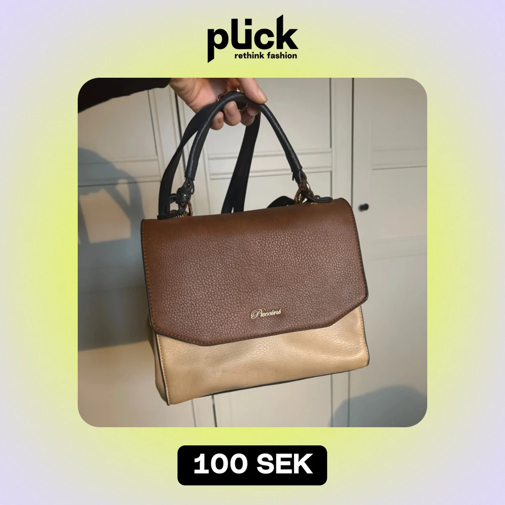 Fin väska från Puccini. Lite vintage stil. Bra med plats utan att kännas för stor. Kan ha den som både handväska och axelremsväska då remmen går att ta av. Fräscht skick! 🤍 #handväska #axelremsväska #vintage #puccini #beige #blå #guld #brun