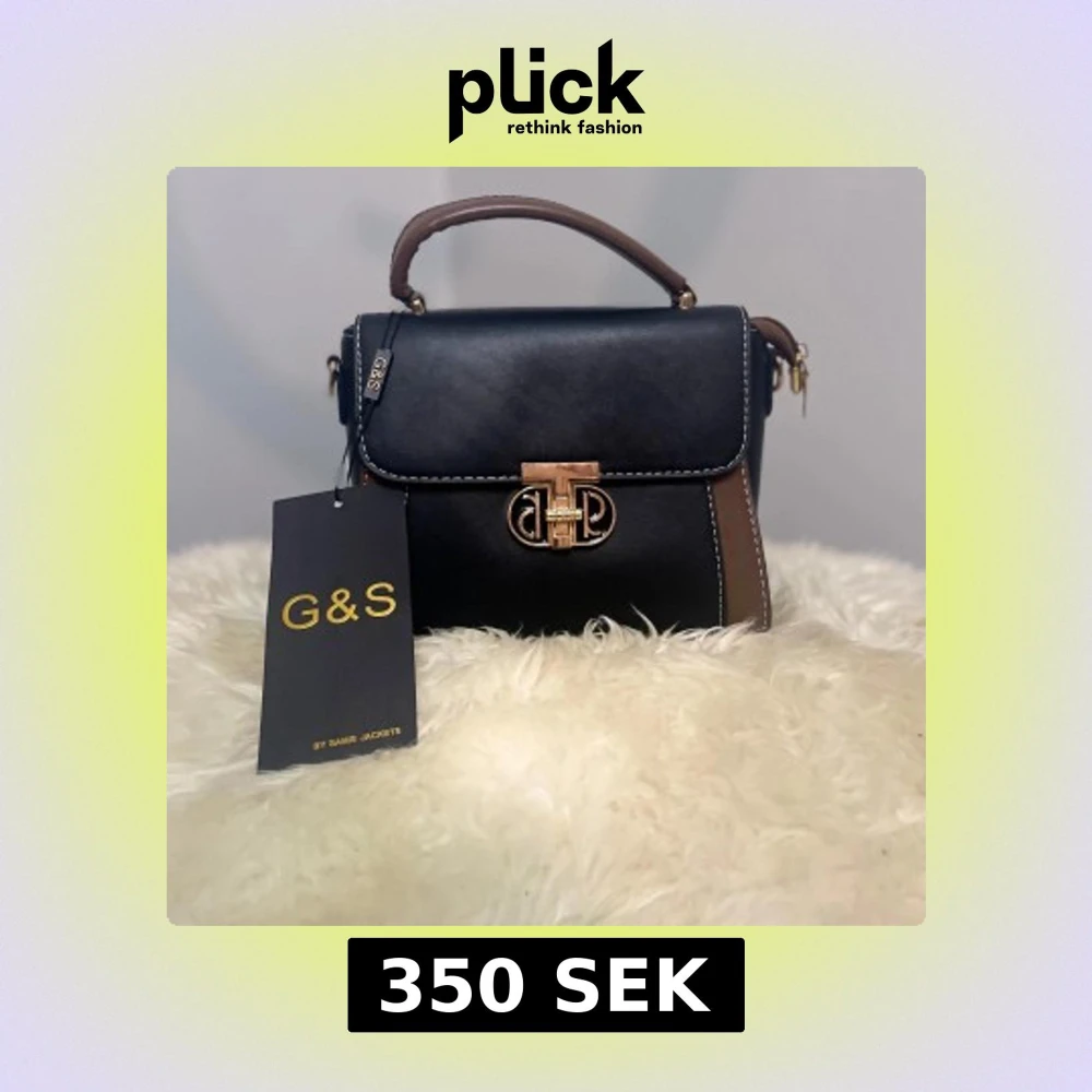 Snygg handväska från G&S i svart och brunt skinn med guldfärgat spänne framtill. Väskan har ett stadigt handtag och medföljande axelrem. Kontrastsömmar och stilren design gör den perfekt för dig som gillar klassiska accessoarer.