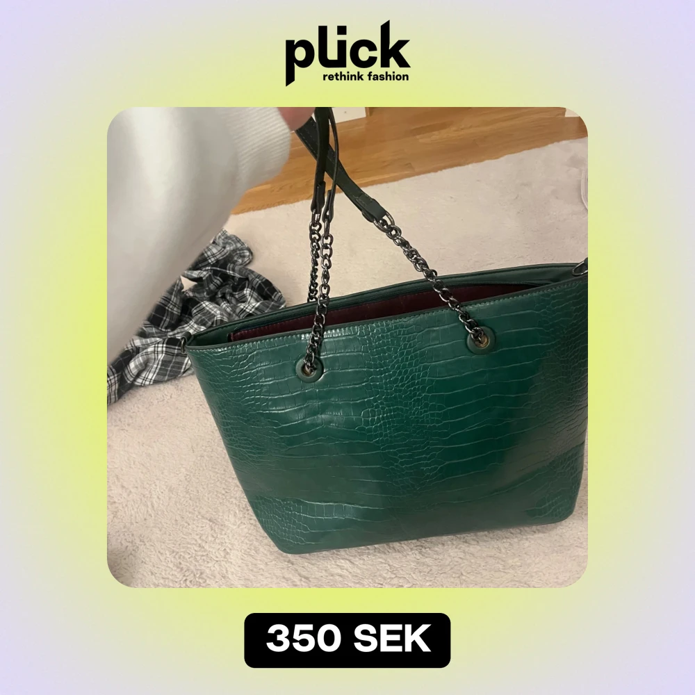 Snygg grön axelväska i syntetmaterial med krokodilmönster. Väskan har kedjehandtag och en dragkedja upptill. Perfekt för att ge en touch av stil till din outfit. Passar bra för både vardag och fest!
