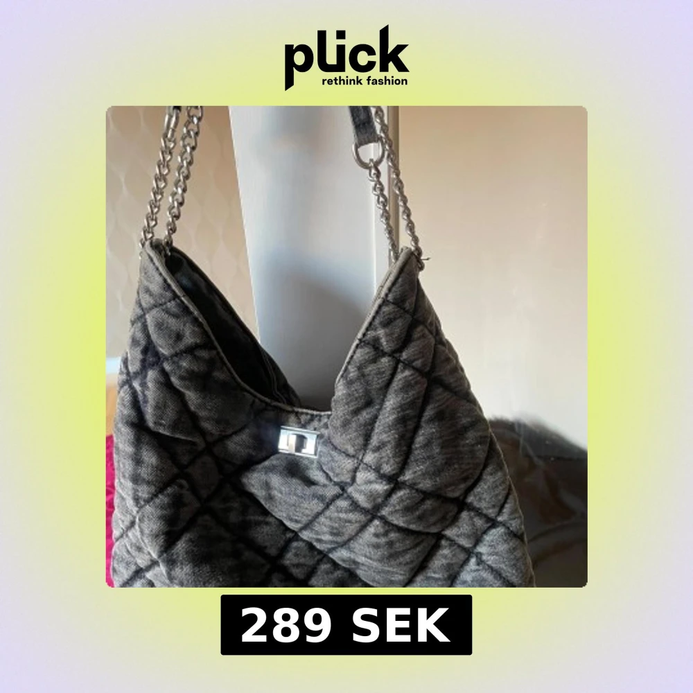 Grå quiltad axelväska med kedjedetaljer
