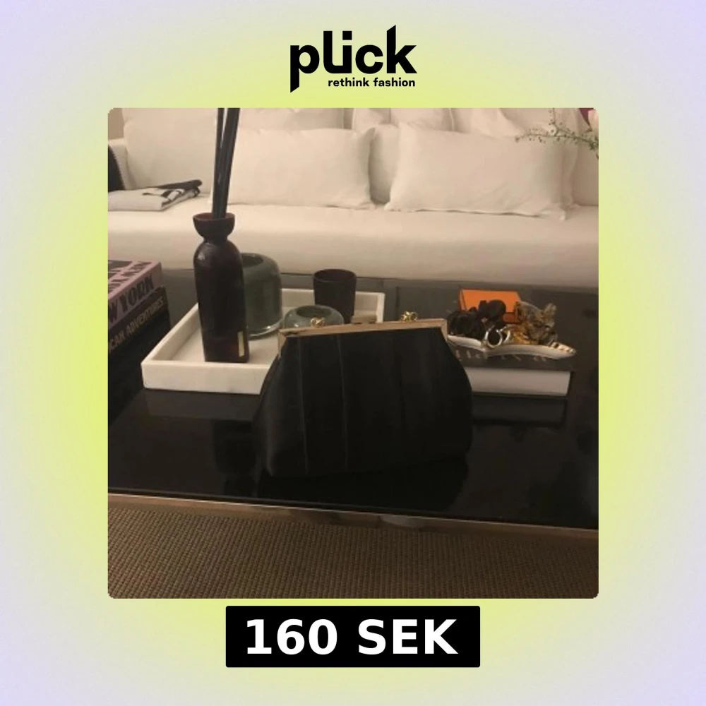 Elegant svart kuvertväska med en stilren design. Väskan har en metallisk ram upptill som ger en lyxig touch. Perfekt för att komplettera en kvällsoutfit.