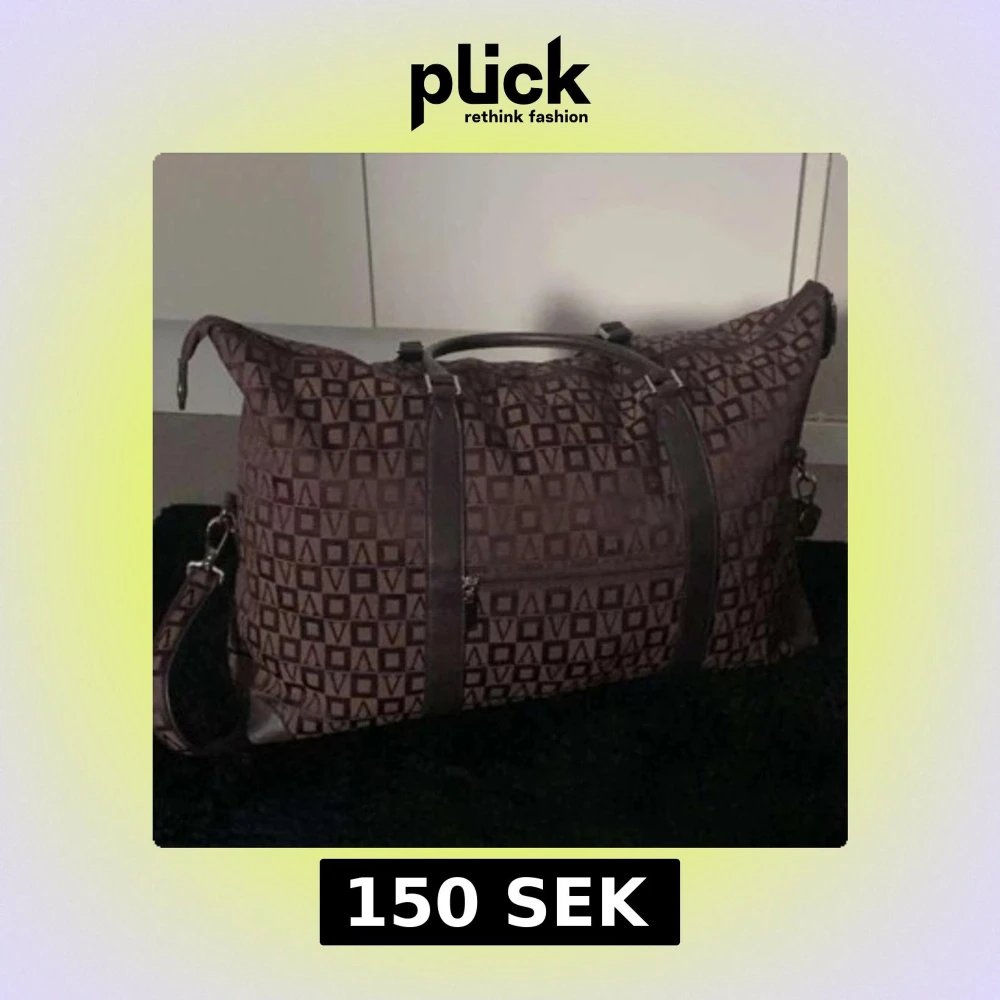 Stor brun duffelväska med grafiskt mönster i olika nyanser av brunt. Väskan har både handtag och avtagbar axelrem i mörkbrunt material samt dragkedja upptill. Väl omhändertagen och kan användas till vardagsbruk och resor.