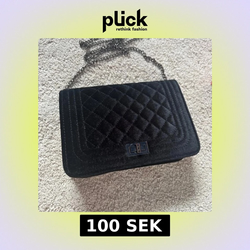 Snygg svart axelväska i mjuk sammet med quiltat rutmönster och silverfärgad kedjerem. Väskan har ett klassiskt rektangulärt lock med vridlås och ett rymligt fack med innerficka med dragkedja. Perfekt för dig som gillar stilrena detaljer och trendig look.