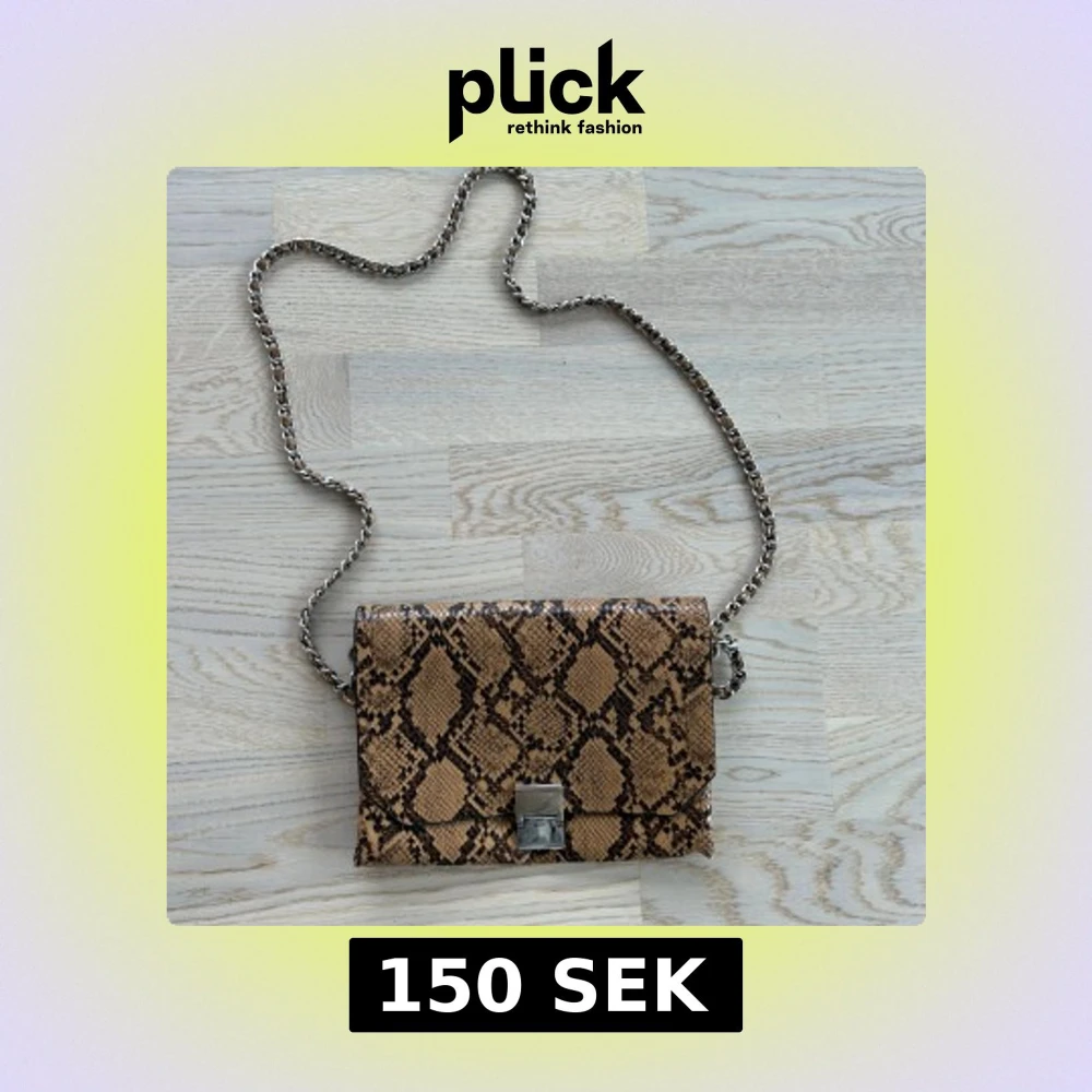 Snygg brun axelväska med ormmönster och silverfärgad kedja, från Zara. Väskan har ett stilrent metallspänne framtill och flera fack inuti för smart förvaring. Perfekt storlek för det viktigaste och ger en cool touch till din outfit.