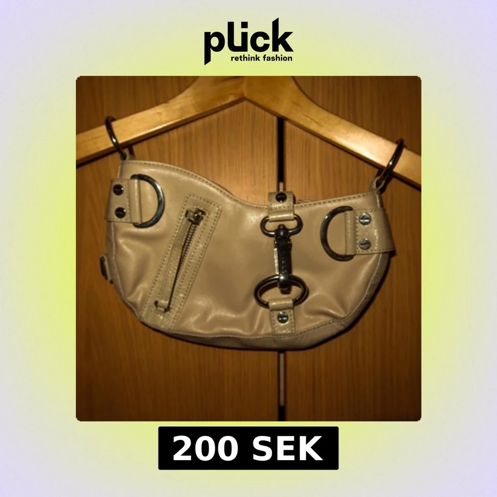 Snygg beige axelväska i syntetmaterial med coola metallringar och en dragkedja framtill. Perfekt för att ge din outfit en edgy touch. Enkelt att fästa med valfritt axelband💕