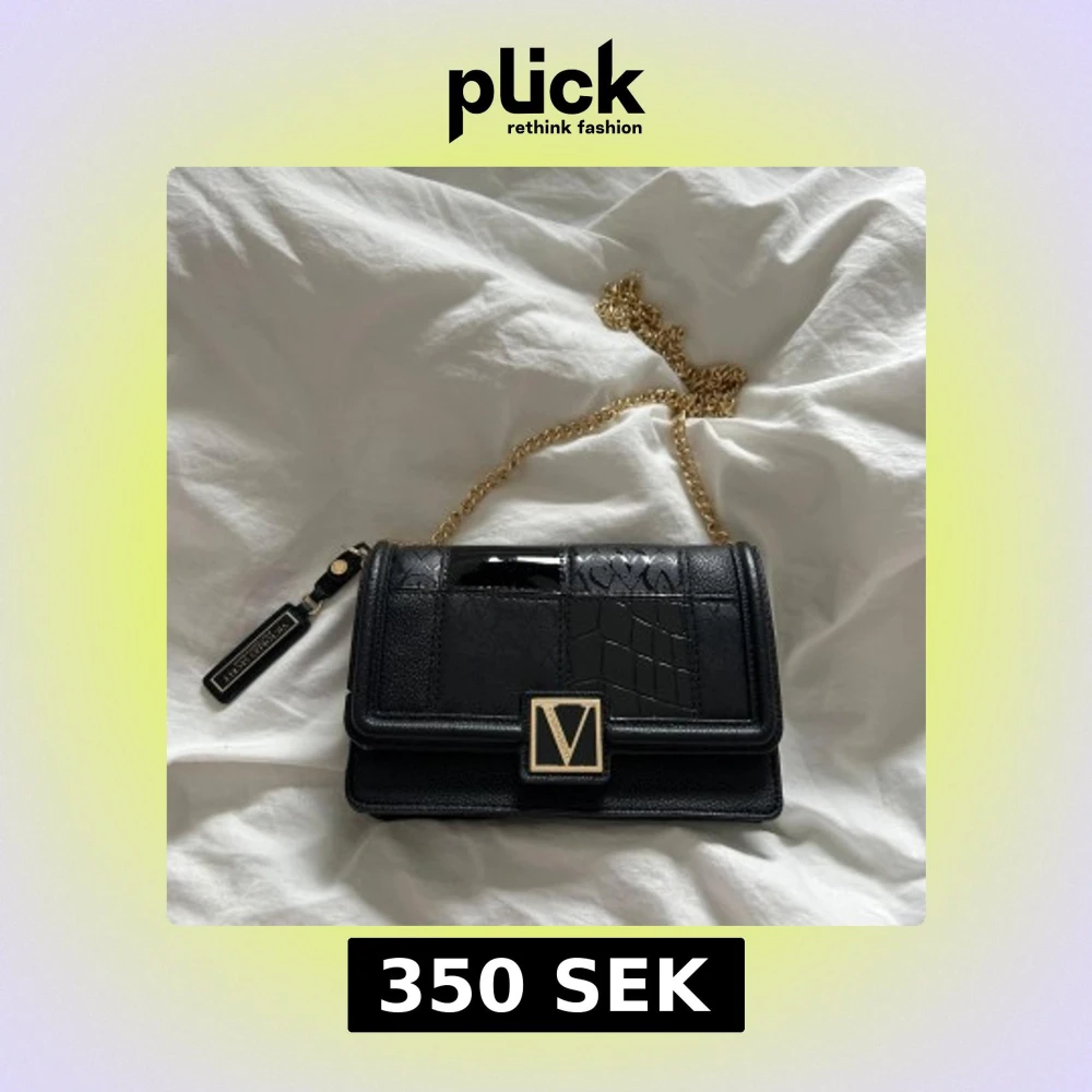 Elegant svart axelväska med guldkedja och dekorativt V-spänne från Victoria’s secret. Helt oanvänd