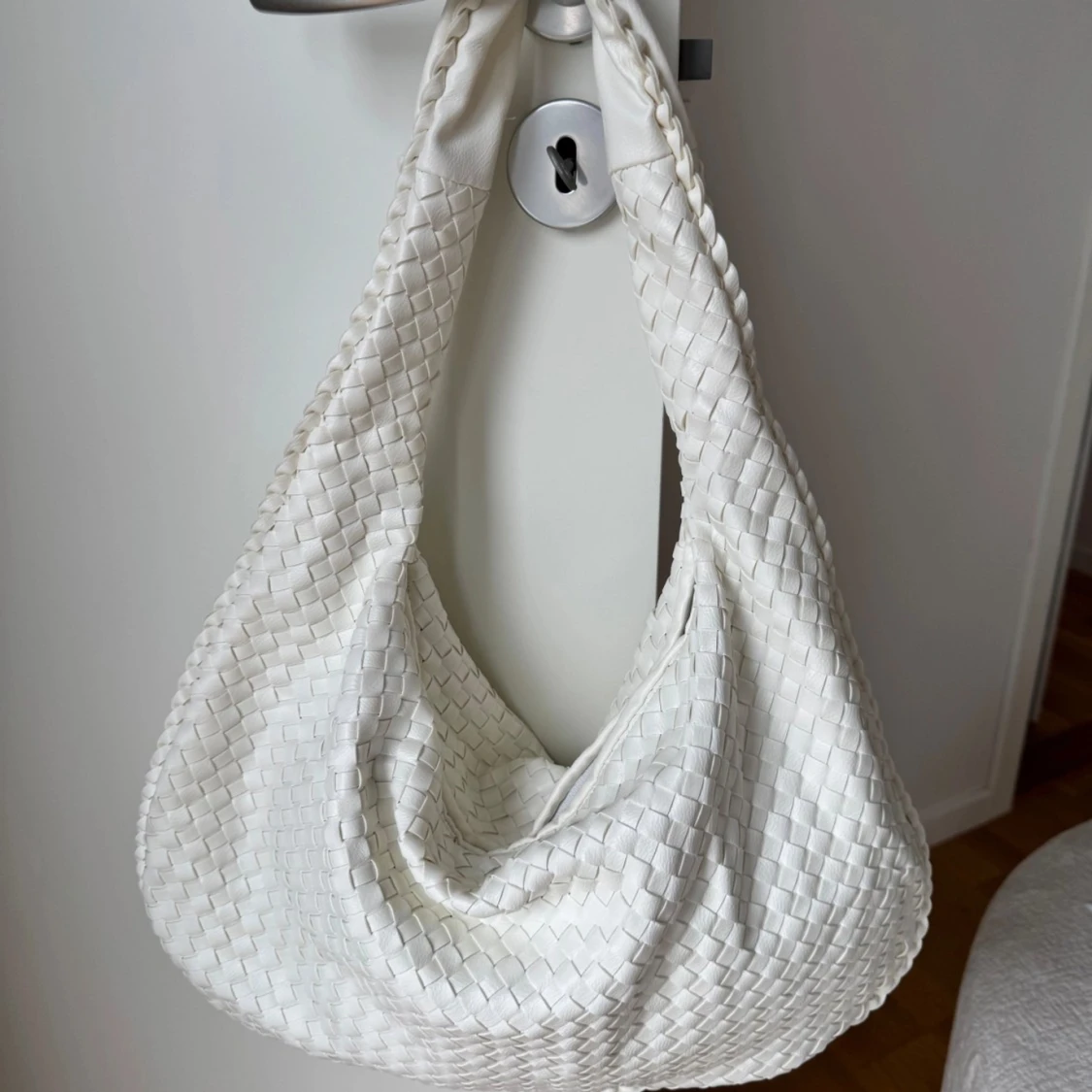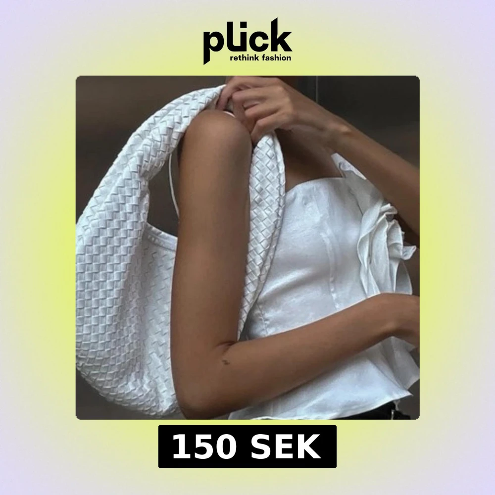 trendig vit flätad väska