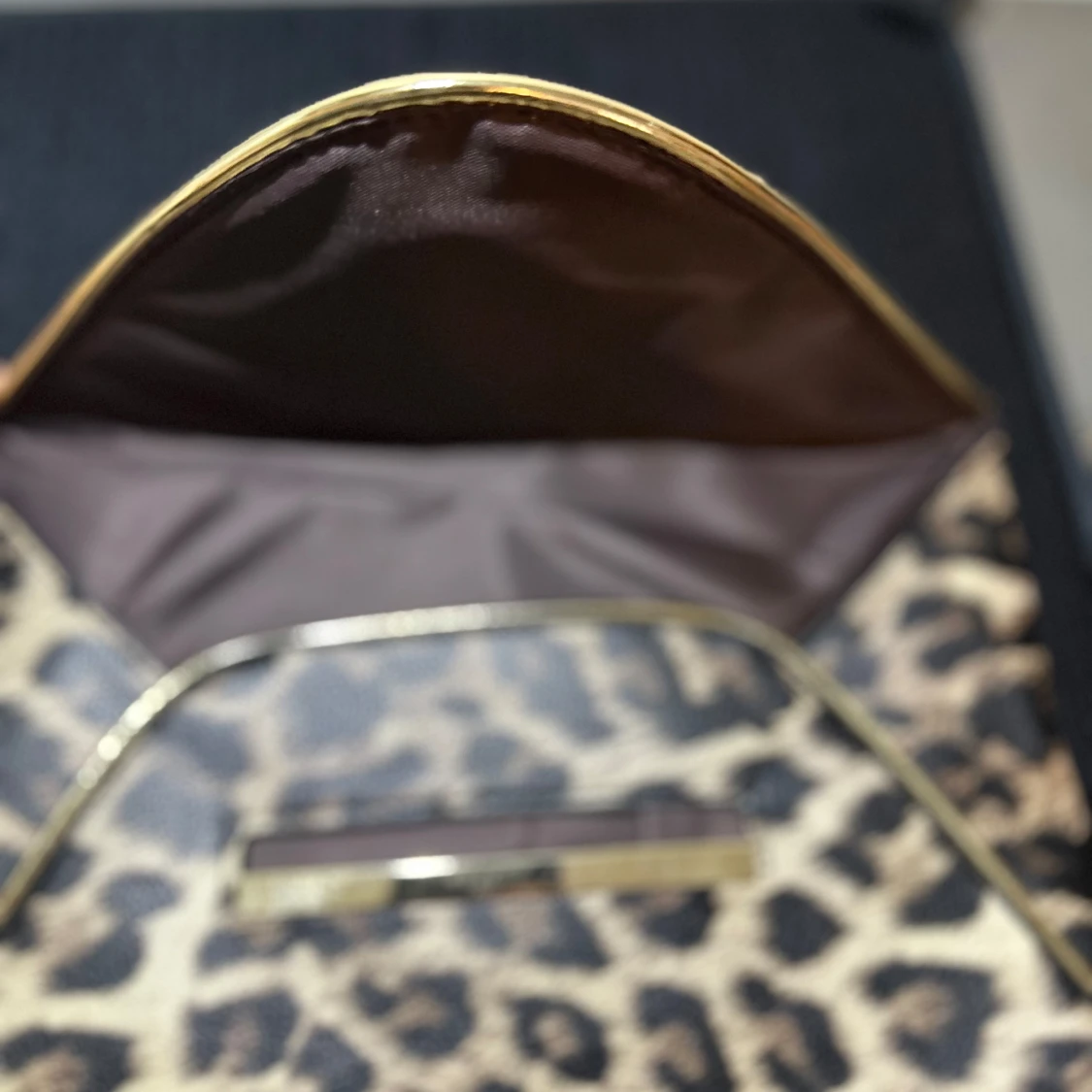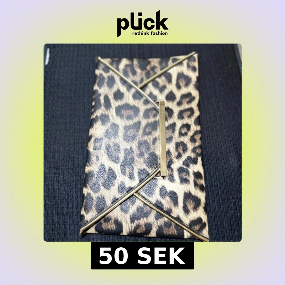 Säljer en snygg kuvertväska med leopardmönster och stilrena guldfärgade detaljer. Väskan har ett brunt innerfoder och ett mindre innerfack. Perfekt accessoar för att lyfta din outfit!