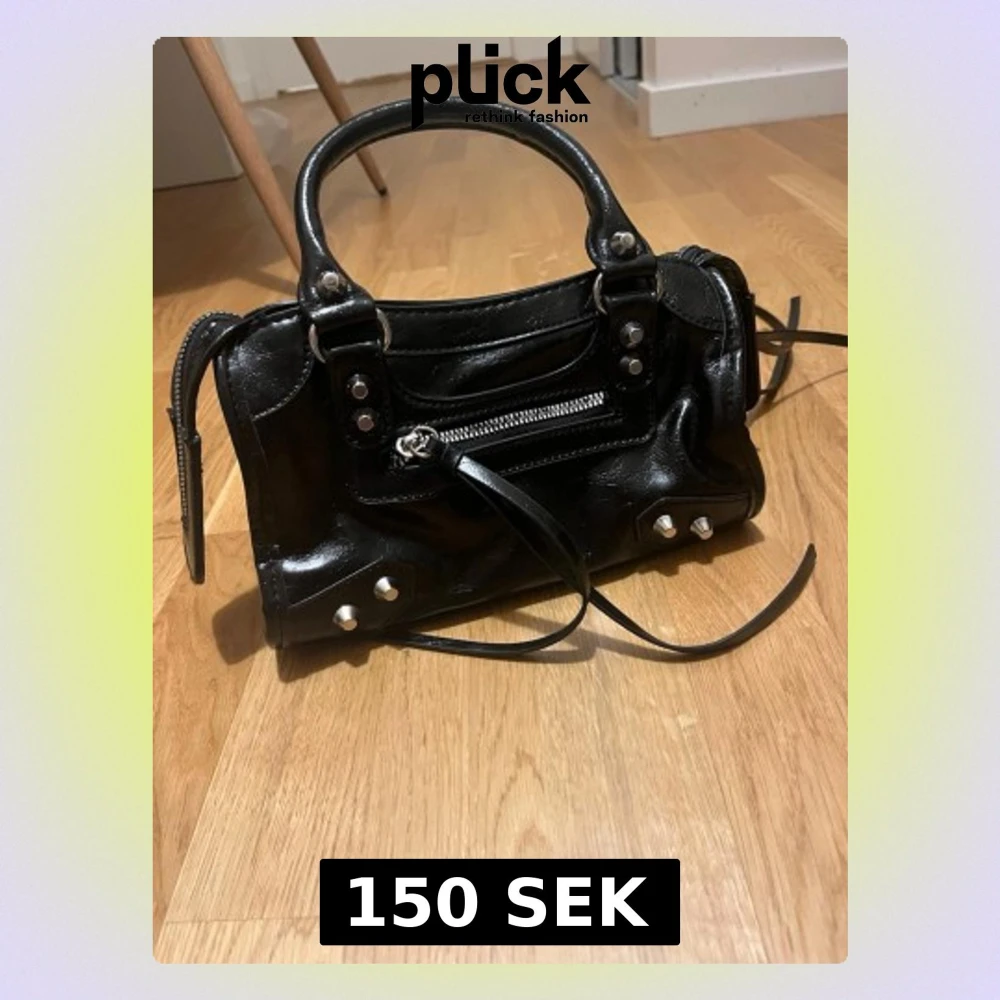 Svart handväska med nitar och dragkedja