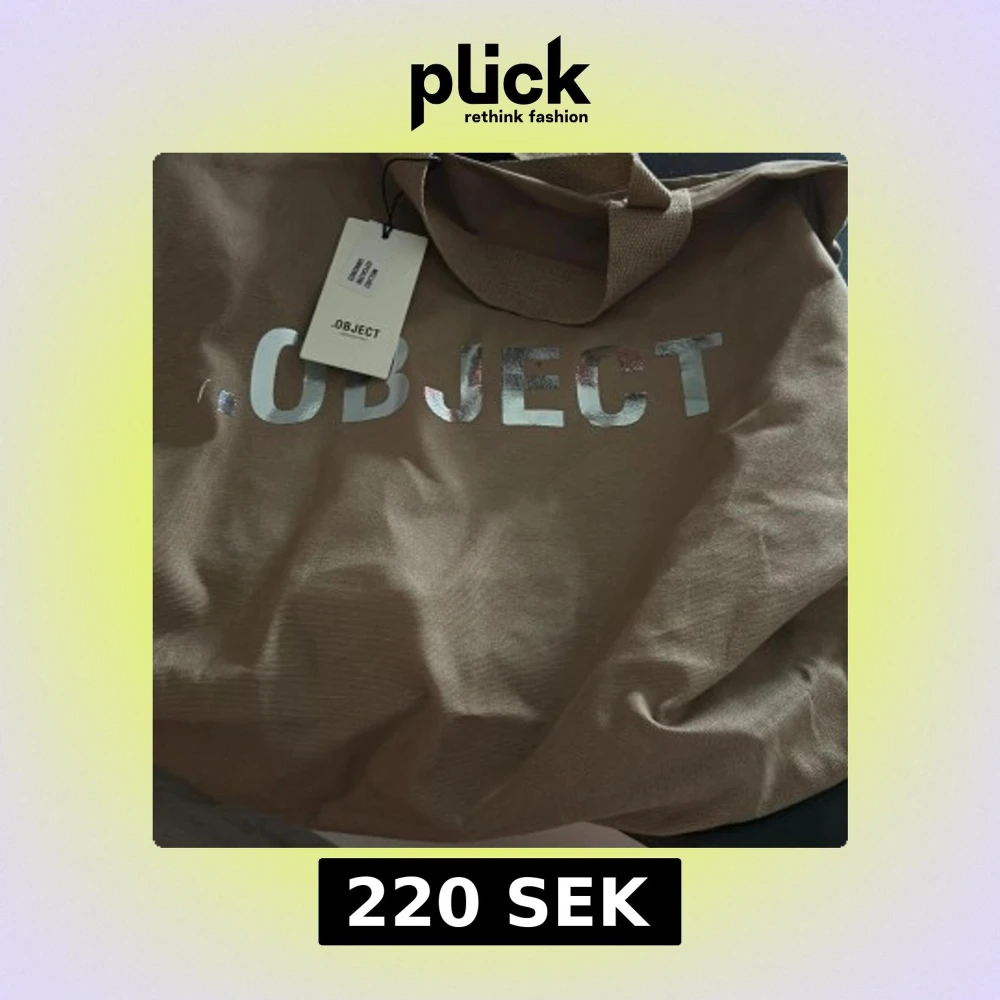 Snygg och rymlig beige shoppingväska från Object med texten 'MADE BY PEOPLE FOR PEOPLE'. Perfekt för att bära med sig allt man behöver under dagen. Väskan har en praktisk ficka på utsidan.