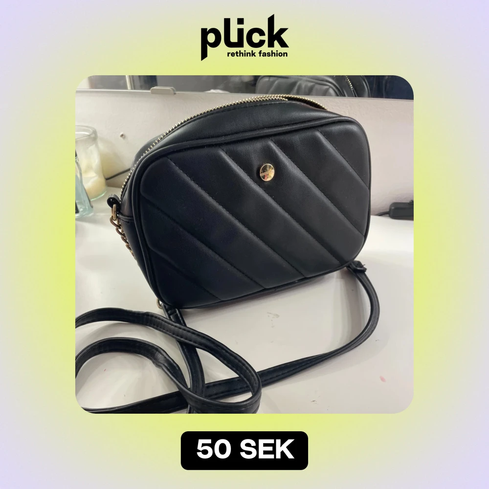 Snygg svart axelväska i quiltat mönster med dragkedja och justerbar axelrem. Perfekt för att bära dina nödvändigheter med stil.