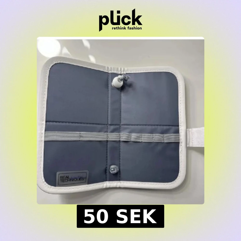 Säljer en stilren vit borstnecessär från Real Techniques. Den har en praktisk design med elastiska band inuti för att hålla borstarna på plats. Enkel att stänga med en knapp och har en smidig rem för att bära med sig.