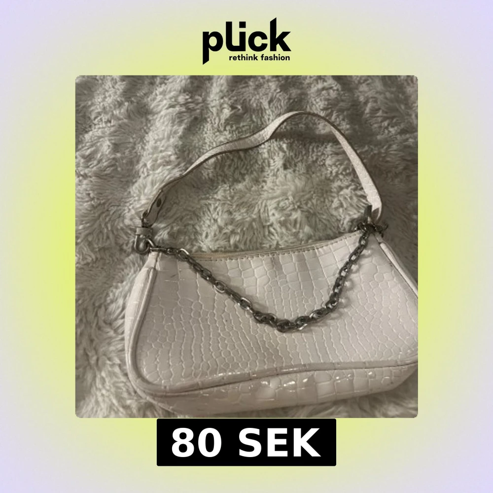 Säljer en stilren vit axelväska med croco-mönster och silverfärgad kedja framtill. Väskan har ett kort axelband och är perfekt för att lyfta din outfit. Enkel att matcha och ger en trendig touch.