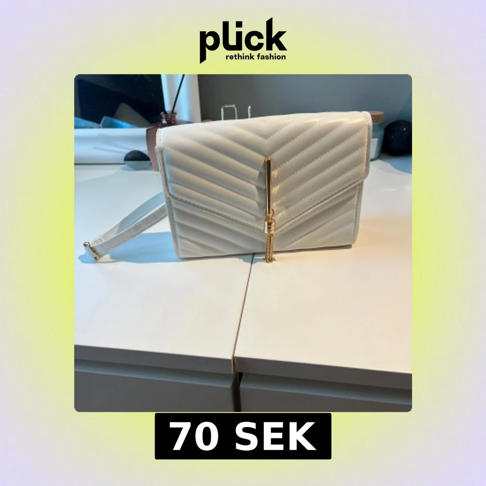 Snygg vit axelväska med quiltat mönster och guldfärgad kedjedetalj framtill. Väskan har en stilren, rektangulär form och justerbart axelband. Perfekt för att lyfta din outfit med en elegant touch.