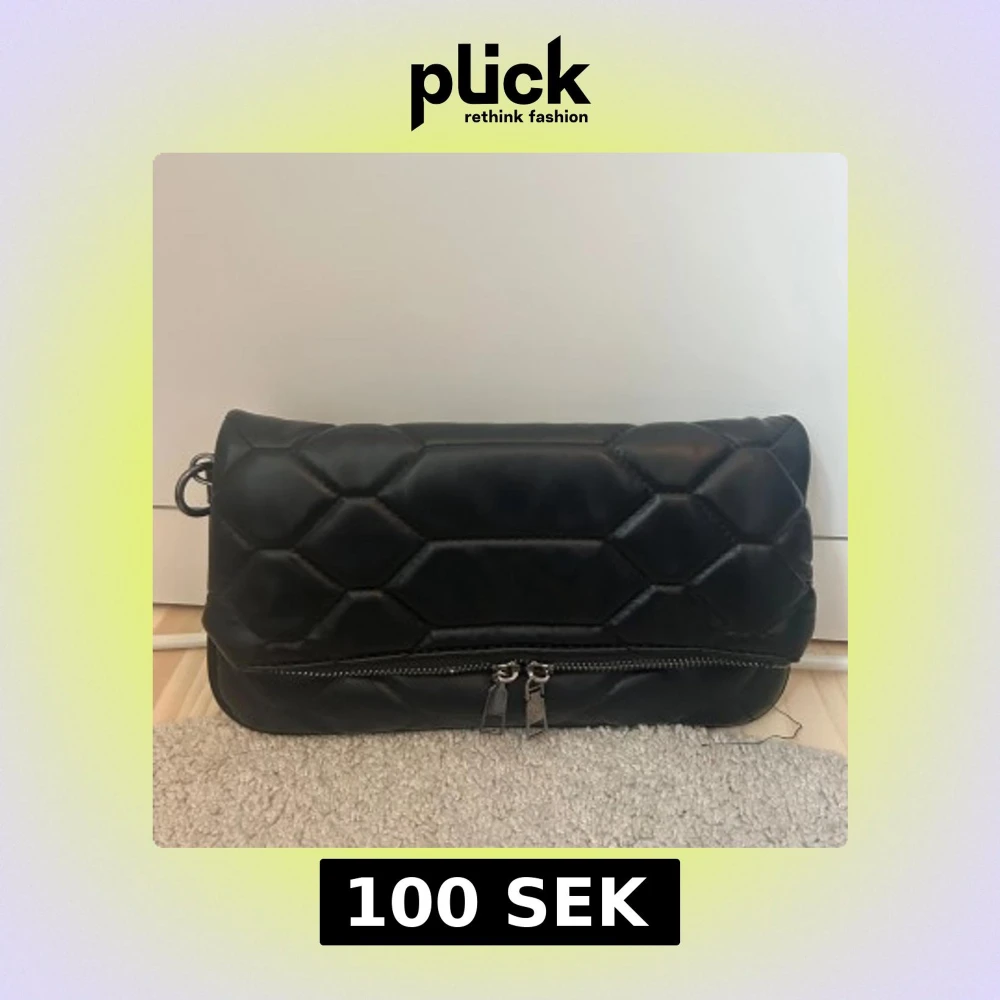Snygg svart axelväska i quiltad skinnimitation med coolt mönster och silverfärgade dragkedjor. Väskan har en kedjerem med inslag av svart konstläder, vilket ger en edgy vibe. Perfekt storlek för det viktigaste och passar till många olika outfits.