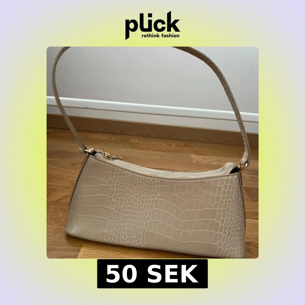 Snygg beige axelväska med krokodilmönster och dragkedja. Perfekt för att ge en stilren touch till din outfit. Väskan har en elegant design med ett bekvämt handtag.