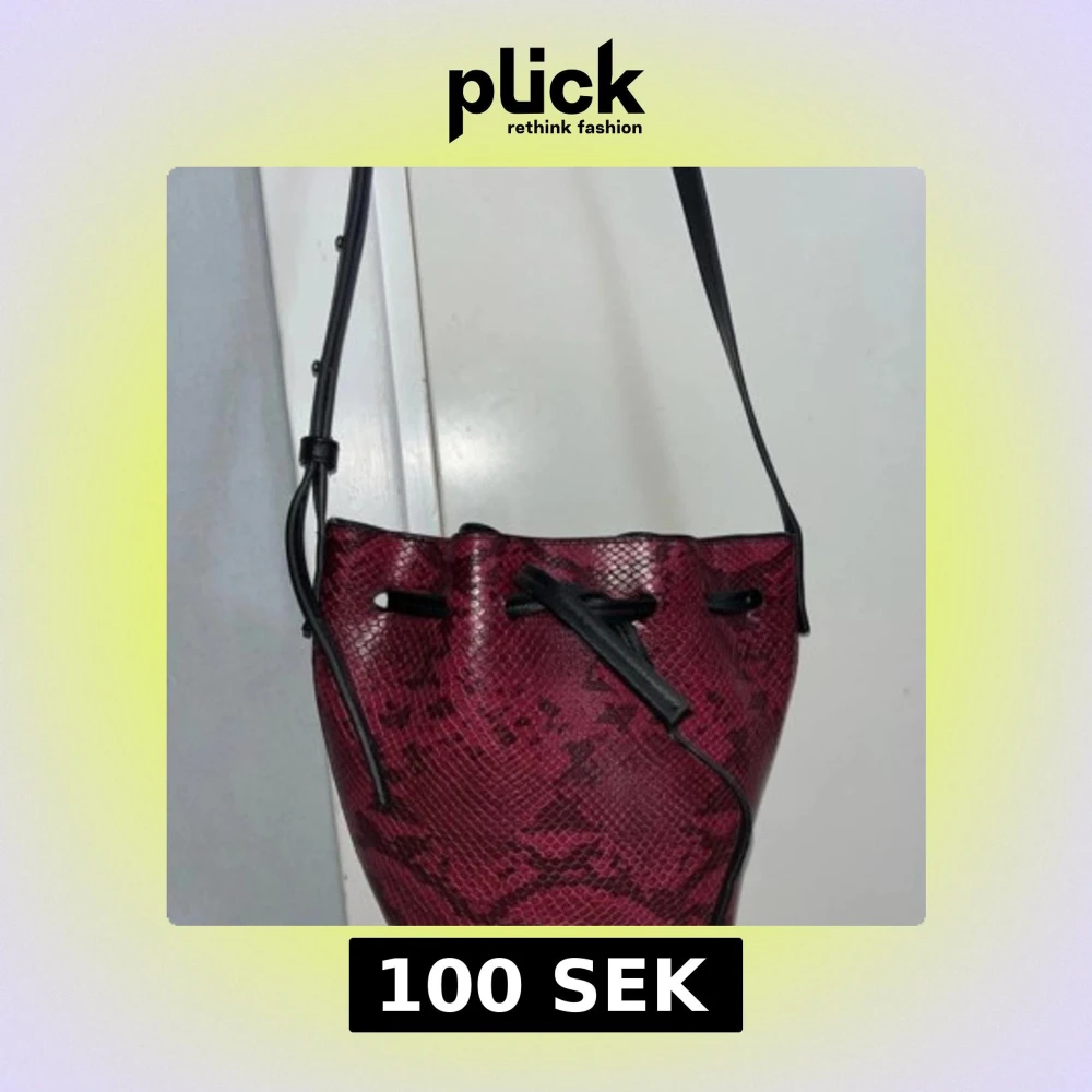 Snygg röd axelväska med ormmönster och svarta detaljer. Väskan har en justerbar axelrem och snörning upptill för att hålla dina saker säkra. Perfekt för att ge din outfit en edgy touch.