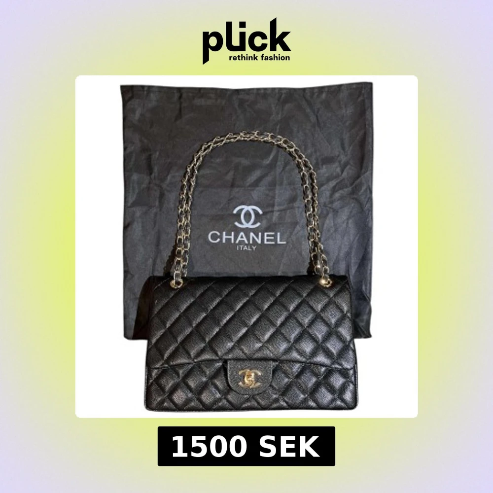 Elegant svart axelväska med quiltad design och kedjedetaljer på axelremmen. Väskan har en klassisk CC-logga på framsidan och en röd insida som ger en lyxig känsla. Perfekt för att lyfta vilken outfit som helst.