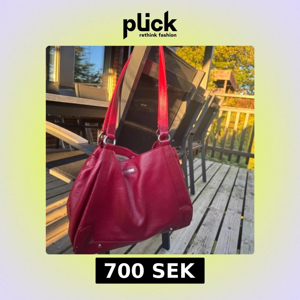 Säljer en snygg röd axelväska från Marc O'Polo i äkta skinn. Väskan har breda axelband, silverfärgade metalldetaljer och en rymlig insida