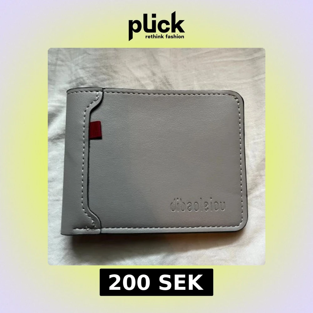 Stilren grå plånbok i skinn från dibaoleiou med minimalistisk design. Plånboken har flera kortfack och ett större fack för sedlar. Snygg detalj med en liten röd flik på framsidan. Perfekt för dig som gillar enkel och clean stil.