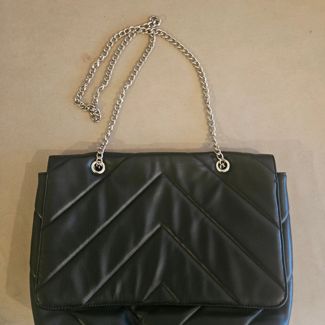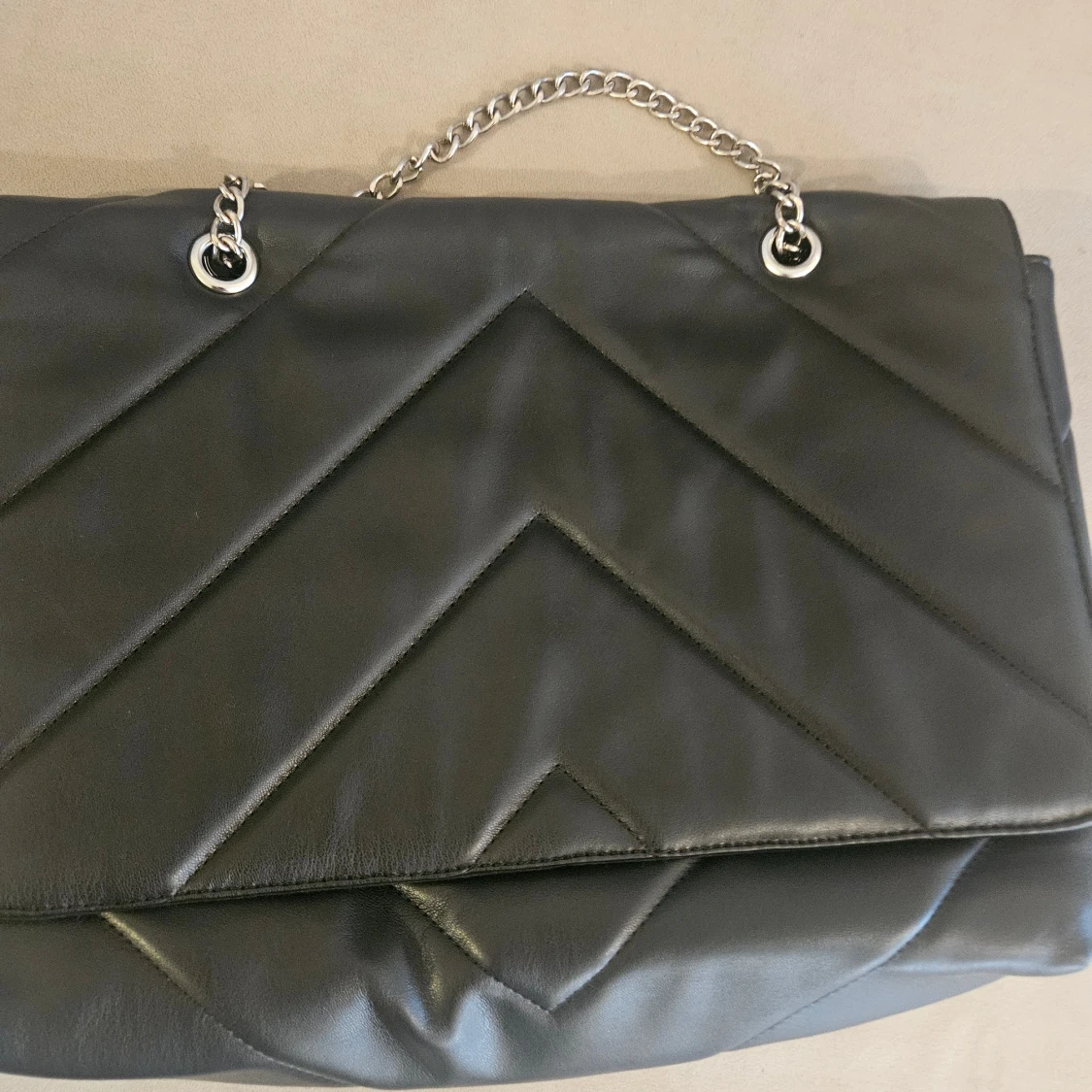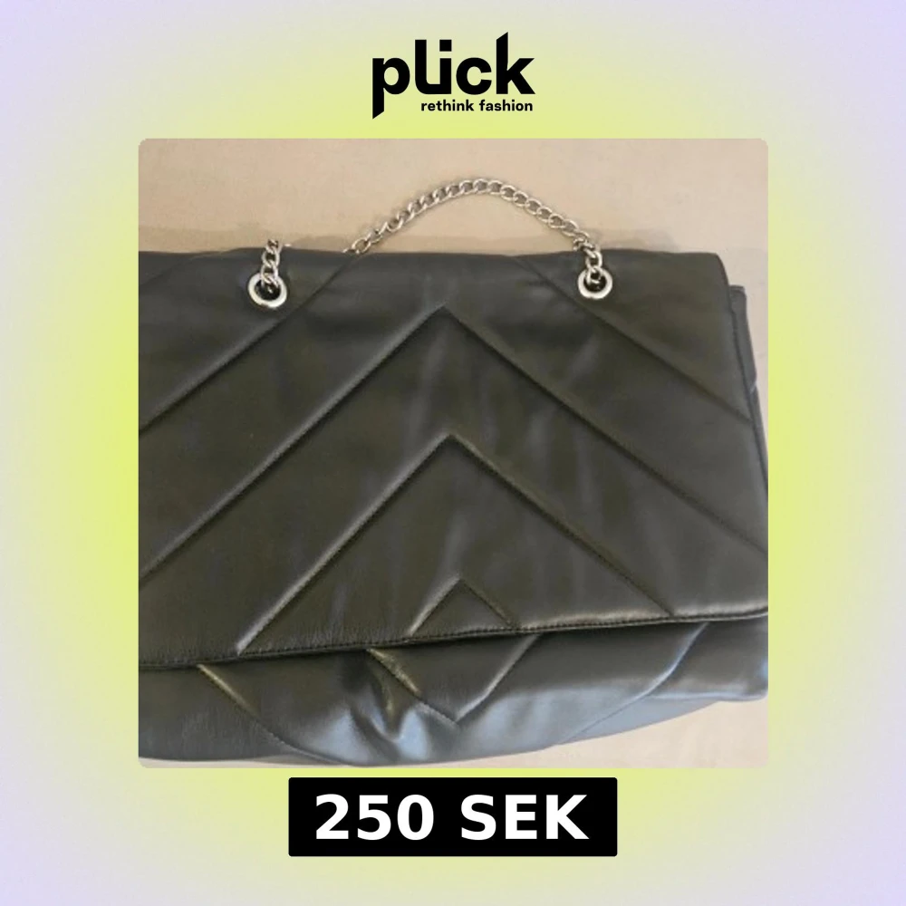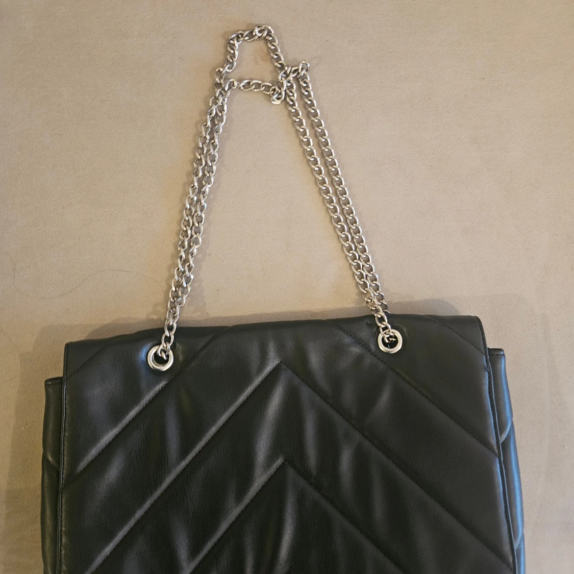 Snygg svart axelväska från NLY Accessories med quiltad design och silverfärgad kedja som axelrem. Väskan har ett stilrent mönster med diagonala sömmar och är gjord i skinnimitation. Perfekt storlek för att få plats med allt viktigt.