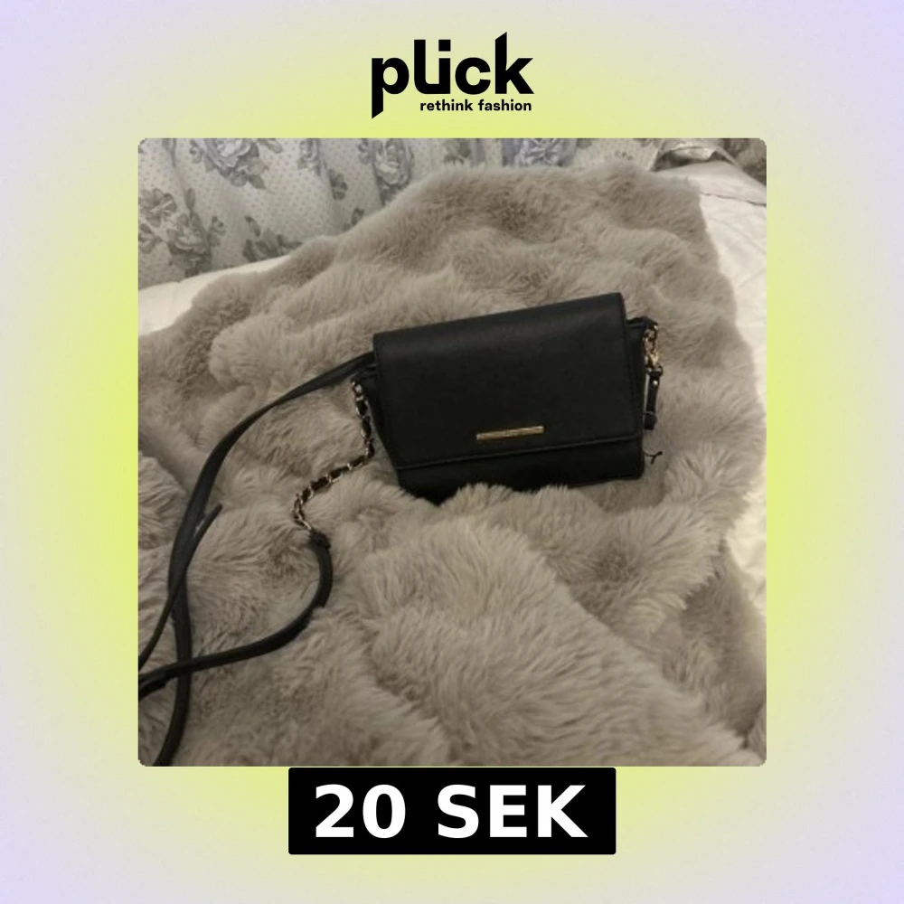 Snygg svart axelväska med kedjedetaljer i guld och stilren design. Väskan har ett lock med magnetstängning och en smal axelrem i kombination av läder och kedja. Perfekt storlek för det viktigaste och passar till många outfits.