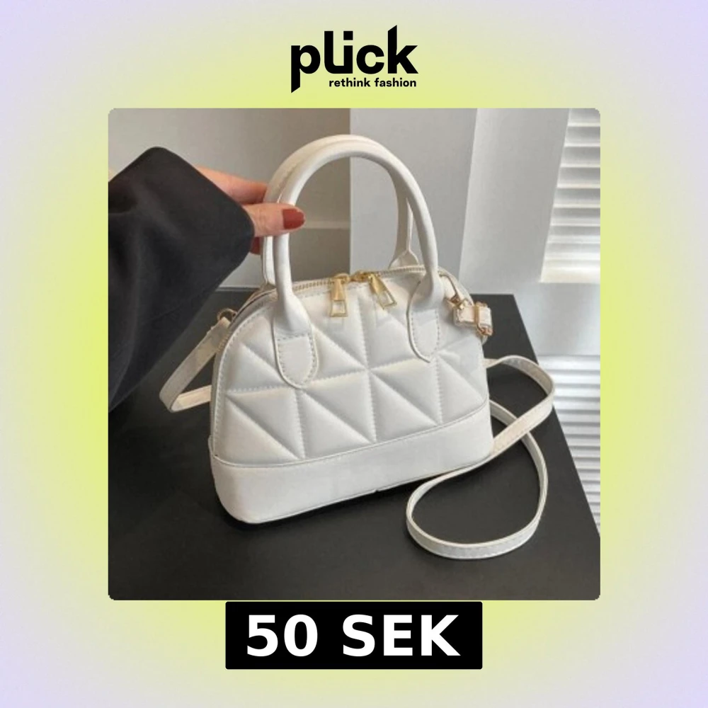 Snygg vit handväska med quiltat mönster och guldfärgade dragkedjor. Den har både handtag och en avtagbar axelrem för flexibilitet. Perfekt för att bära dina nödvändigheter med stil.