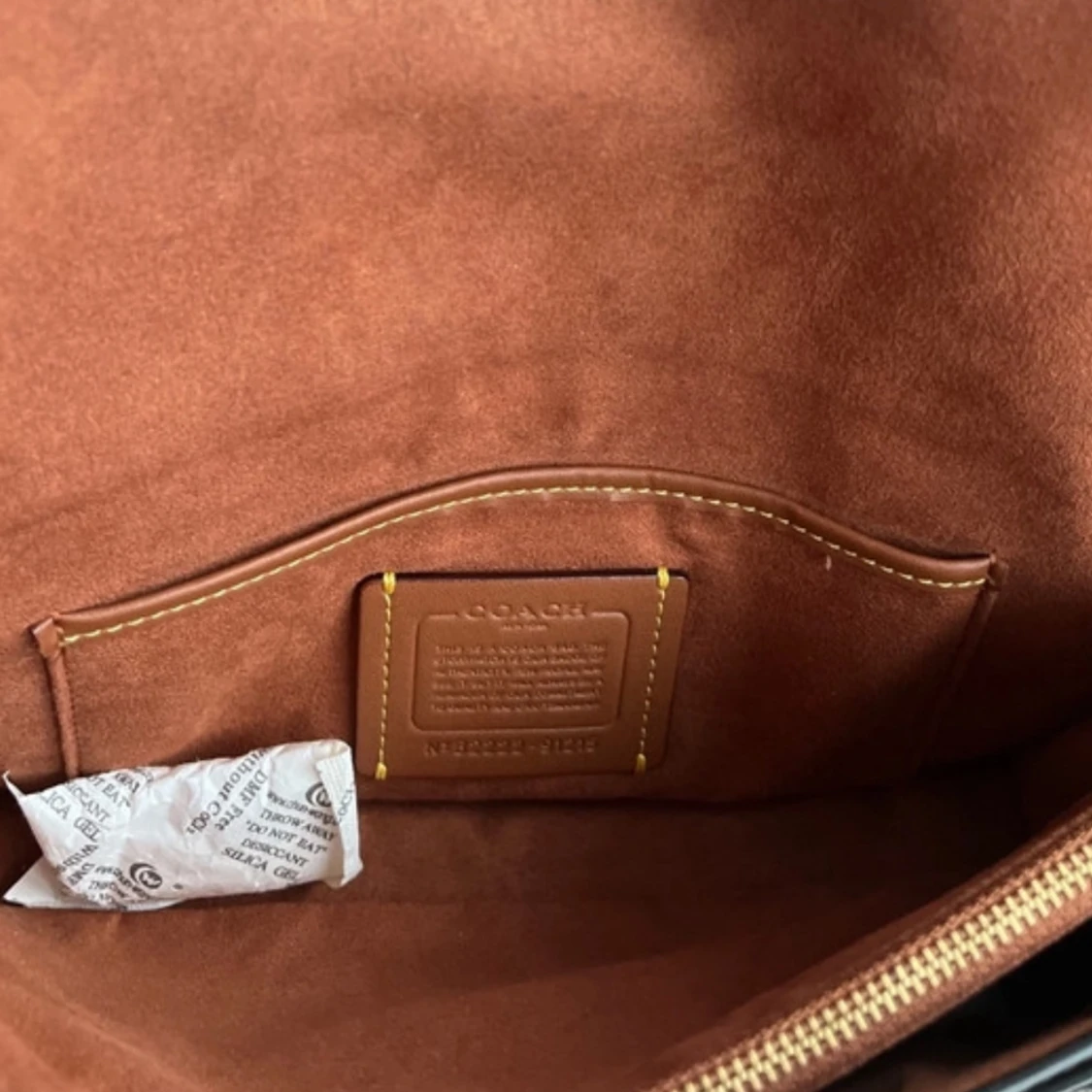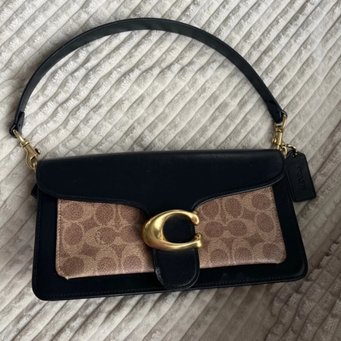 Snygg axelväska från Coach i svart och brun med ett stort guldfärgat spänne. Väskan har ett klassiskt mönster på framsidan och en justerbar axelrem. Insidan är fodrad i brunt tyg med en innerficka för extra förvaring. Den är i toppen skick och man får den med påsen. Köpt från zalando!