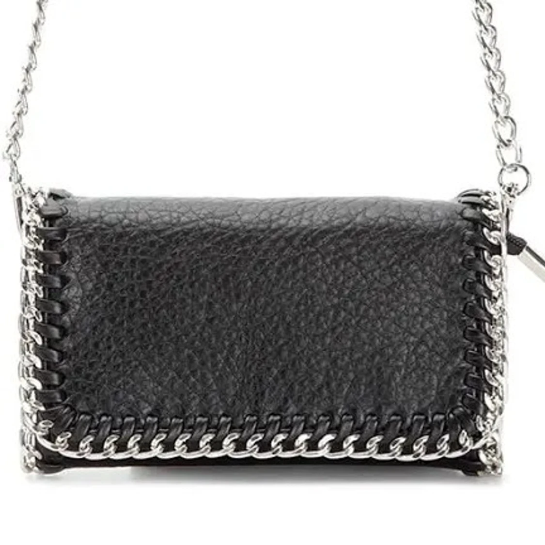 Cool svart axelväska i skinn med silverfärgad kedja runt kanterna och som axelrem. Väskan har en stilren, rektangulär form och grov struktur i materialet. Perfekt för dig som gillar edgy detaljer och vill ha en väska som sticker ut.
