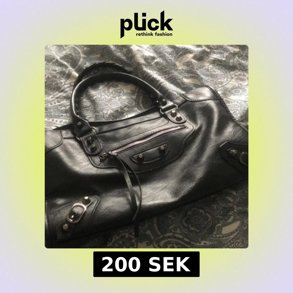 Snygg svart skinnväska med dragkedja och nitar. Perfekt för att bära med sig allt man behöver. Väskan har dubbla handtag och en praktisk ficka framtill.