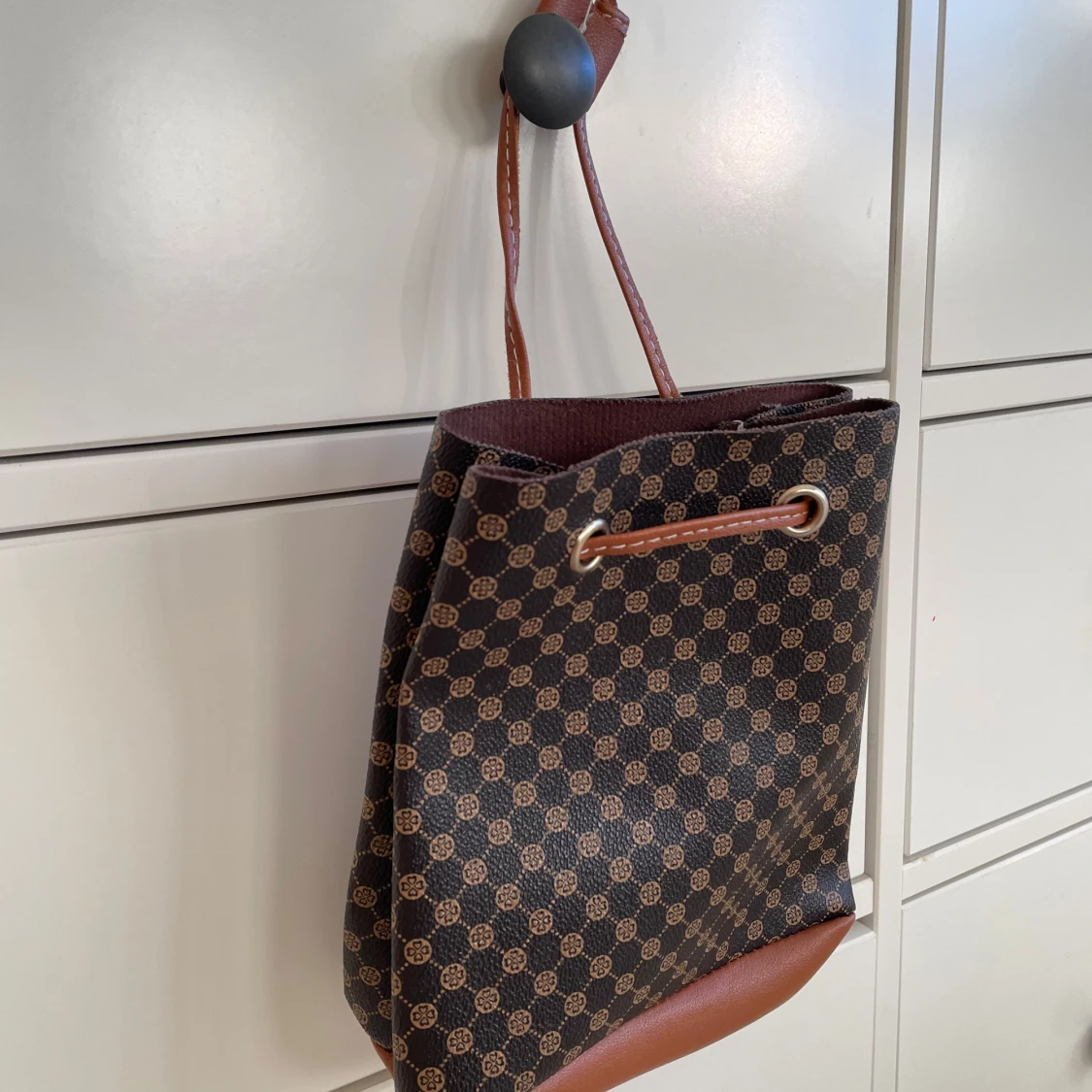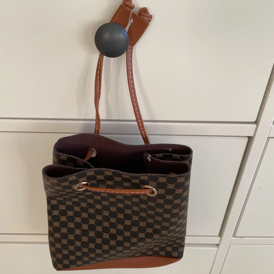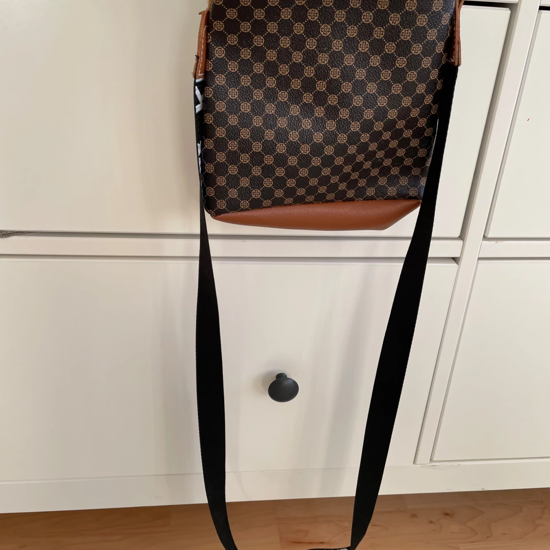 Snygg axelväska med ett klassiskt mönster i brunt och svart. Väskan har en justerbar axelrem och en praktisk dragsko för enkel öppning och stängning. Perfekt för att bära dina dagliga nödvändigheter med stil.