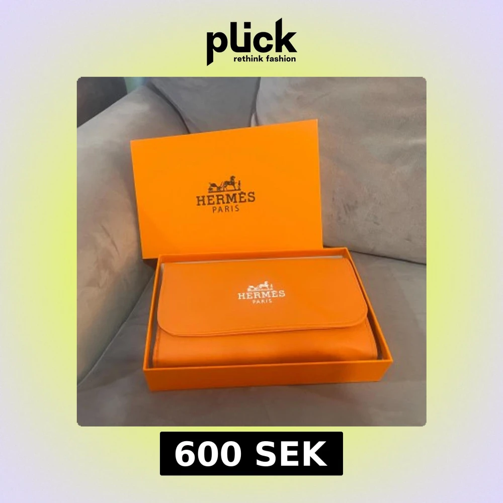 Snygg orange kuvertväska med klassisk logga på framsidan. Väskan är rektangulär och har plats för sminkborstar eller andra småsaker. Tillverkad i skinn med slät yta och praktisk knappstängning. Perfekt för dig som gillar lyxiga accessoarer. Med borstarna!!!!!